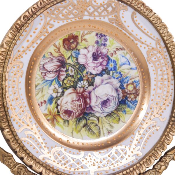 قطعة سيراميك فخمة مطعمة بالذهب مع مقابض حلزونية نحاس ملكي