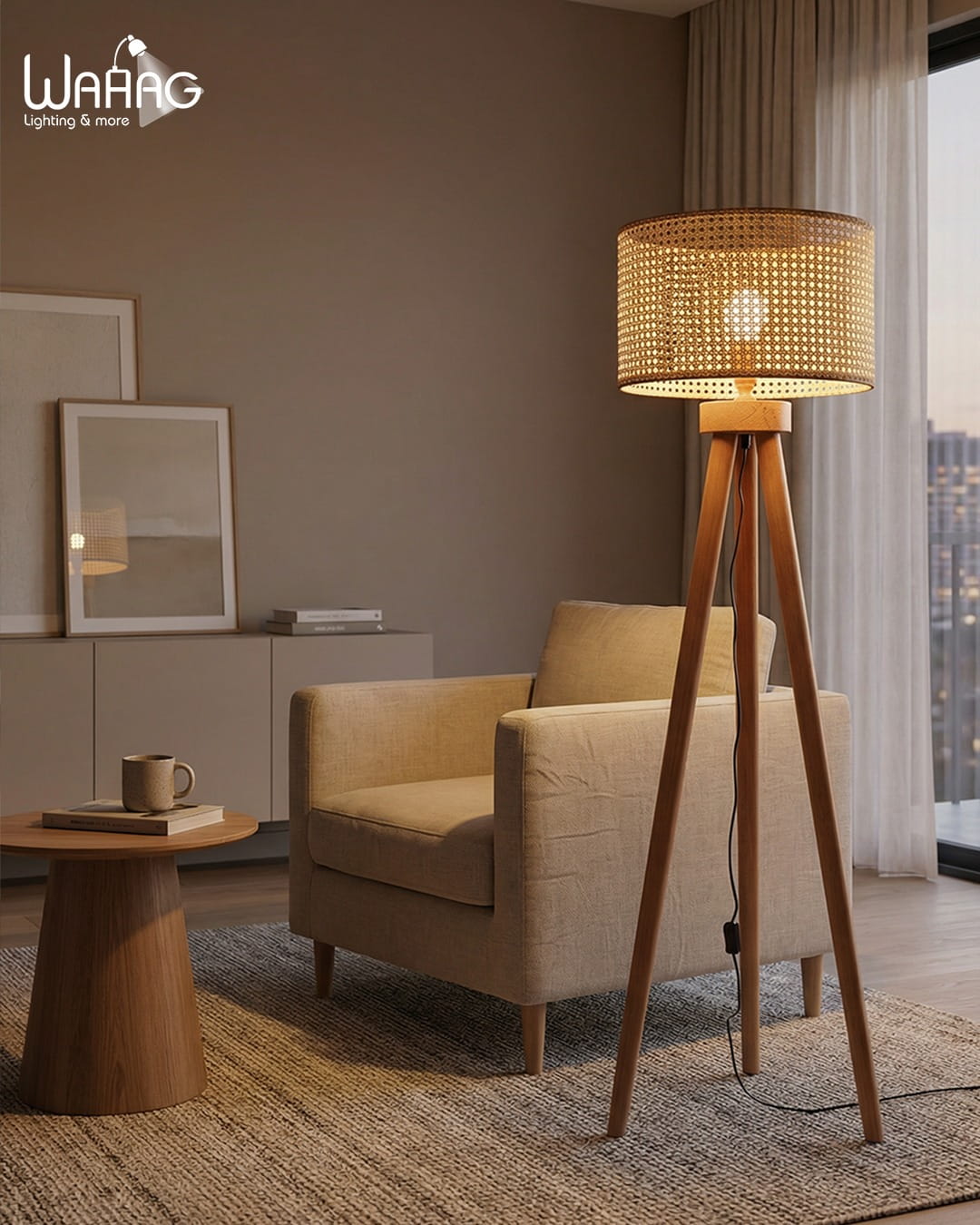 أضف لمسة من الطبيعة والدفء إلى منزلك مع مصباح الأرضية الخشبي “واهاج”، بتصميمه الريفي العصري.