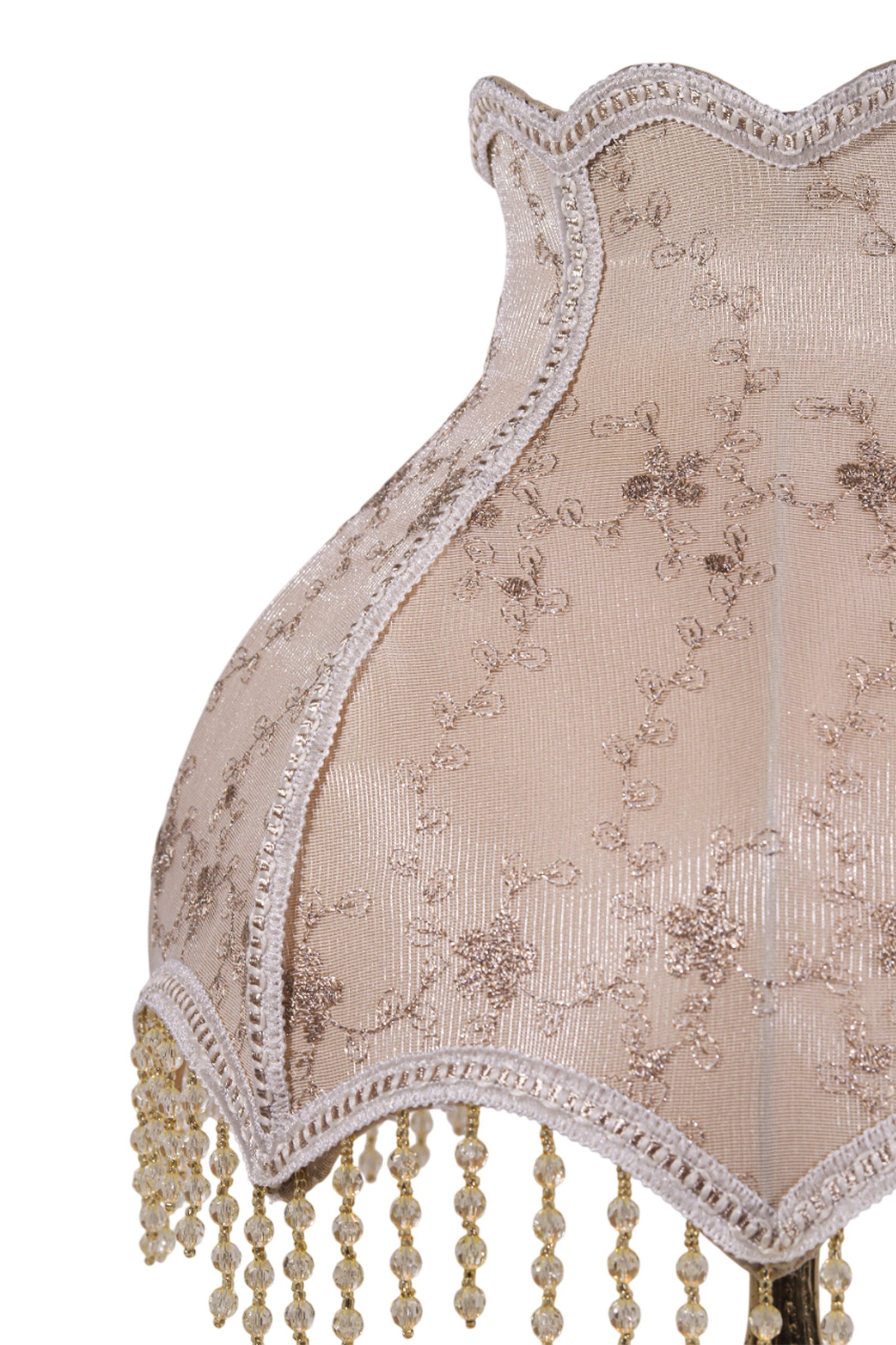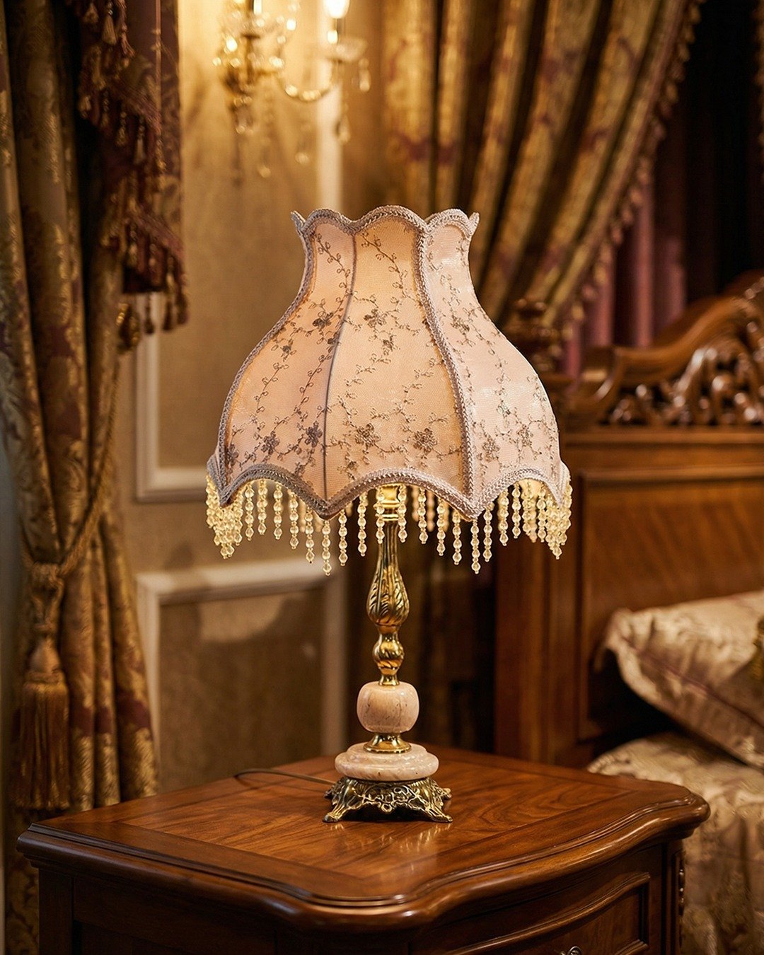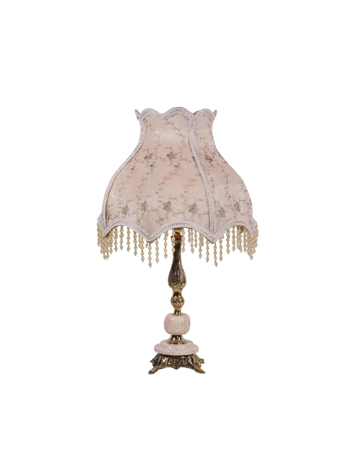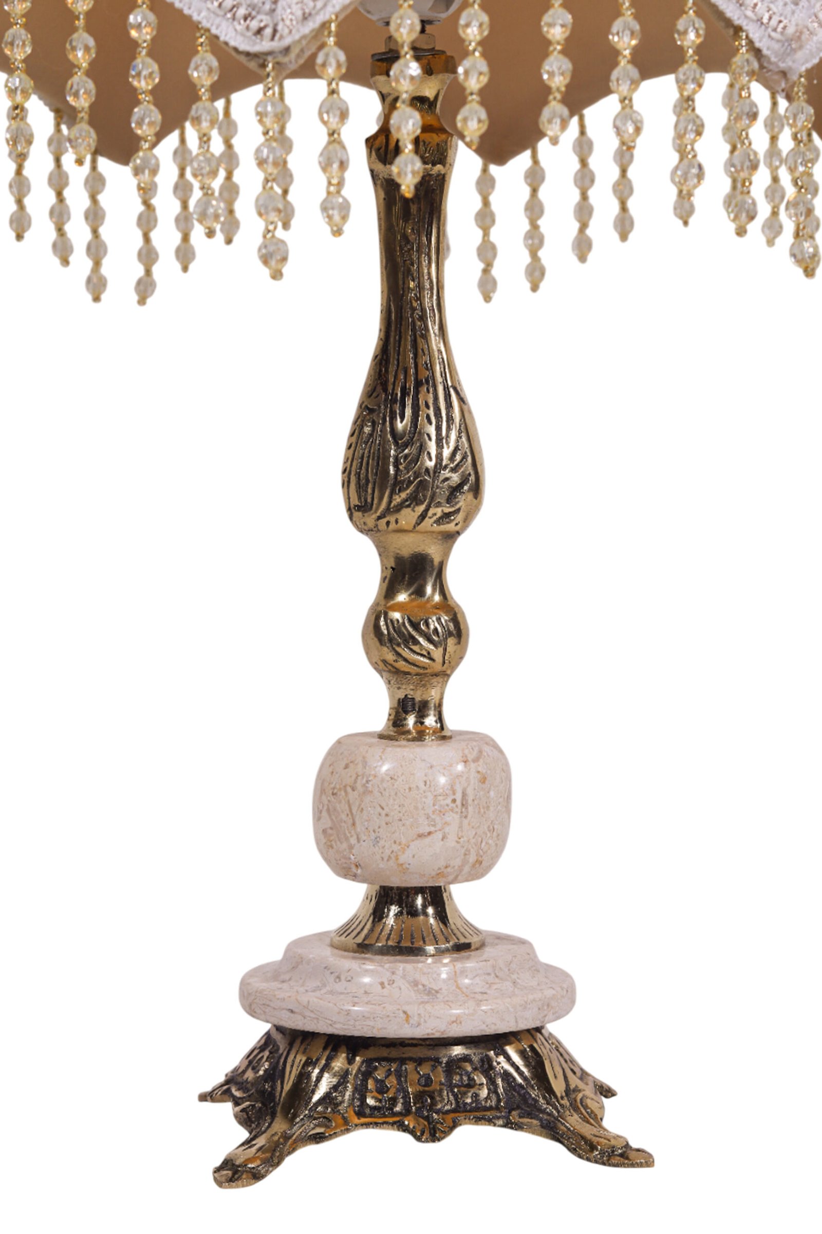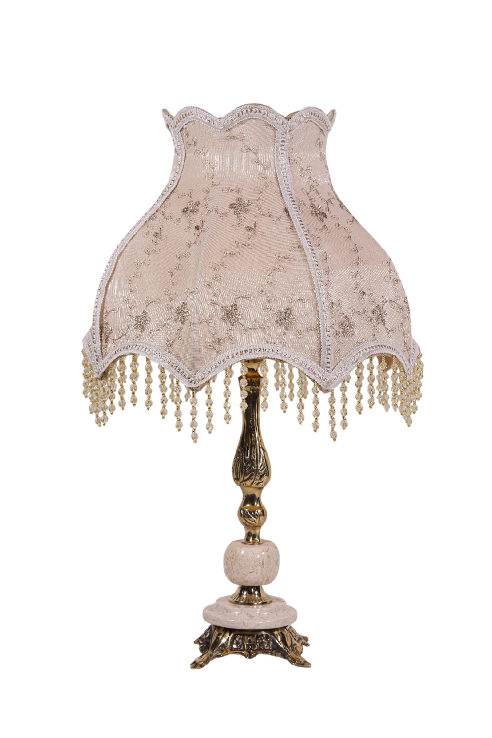مصباح طاولة كلاسيكي من النحاس مع غطاء غويبور تركي فاخر وحبات كريستال.