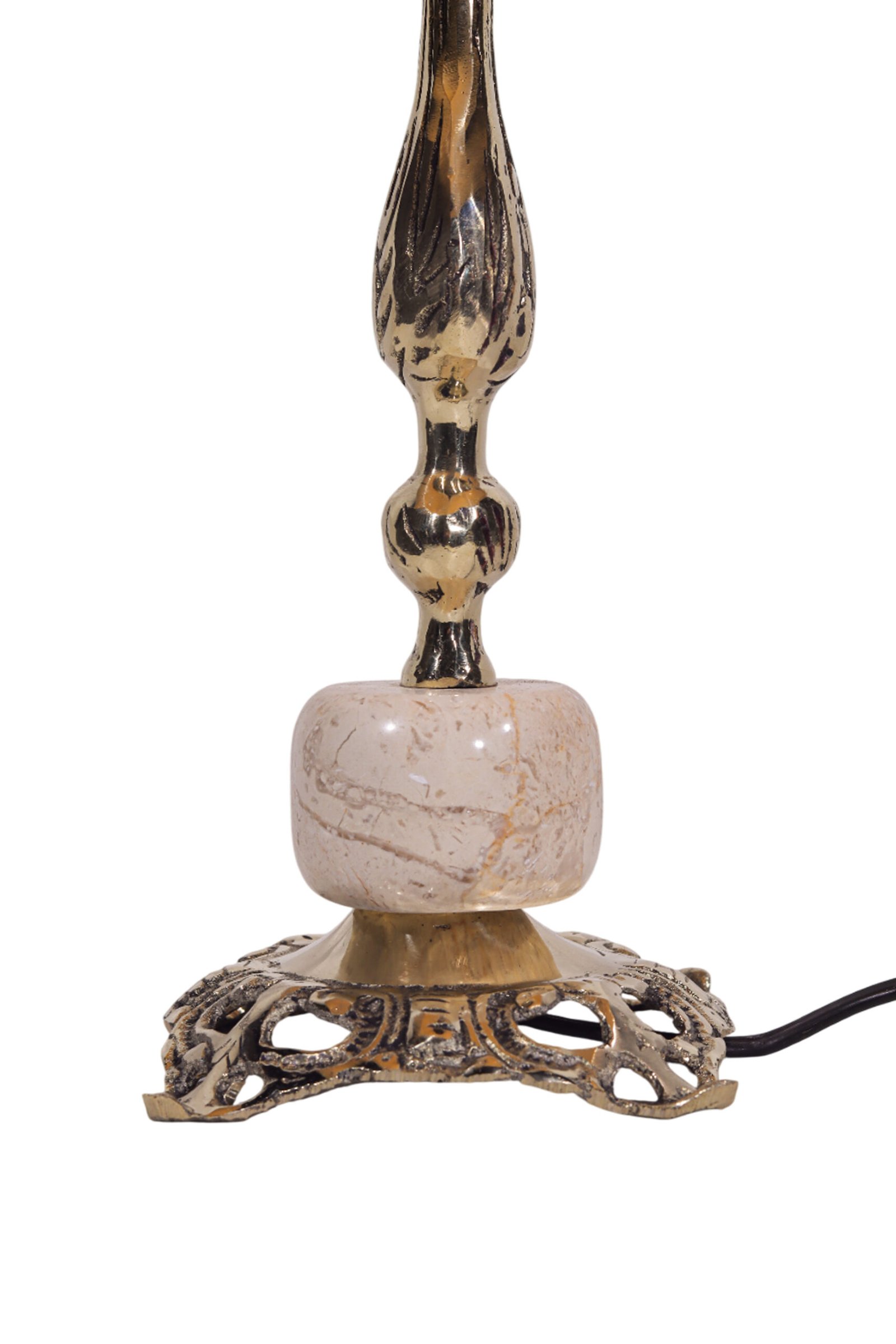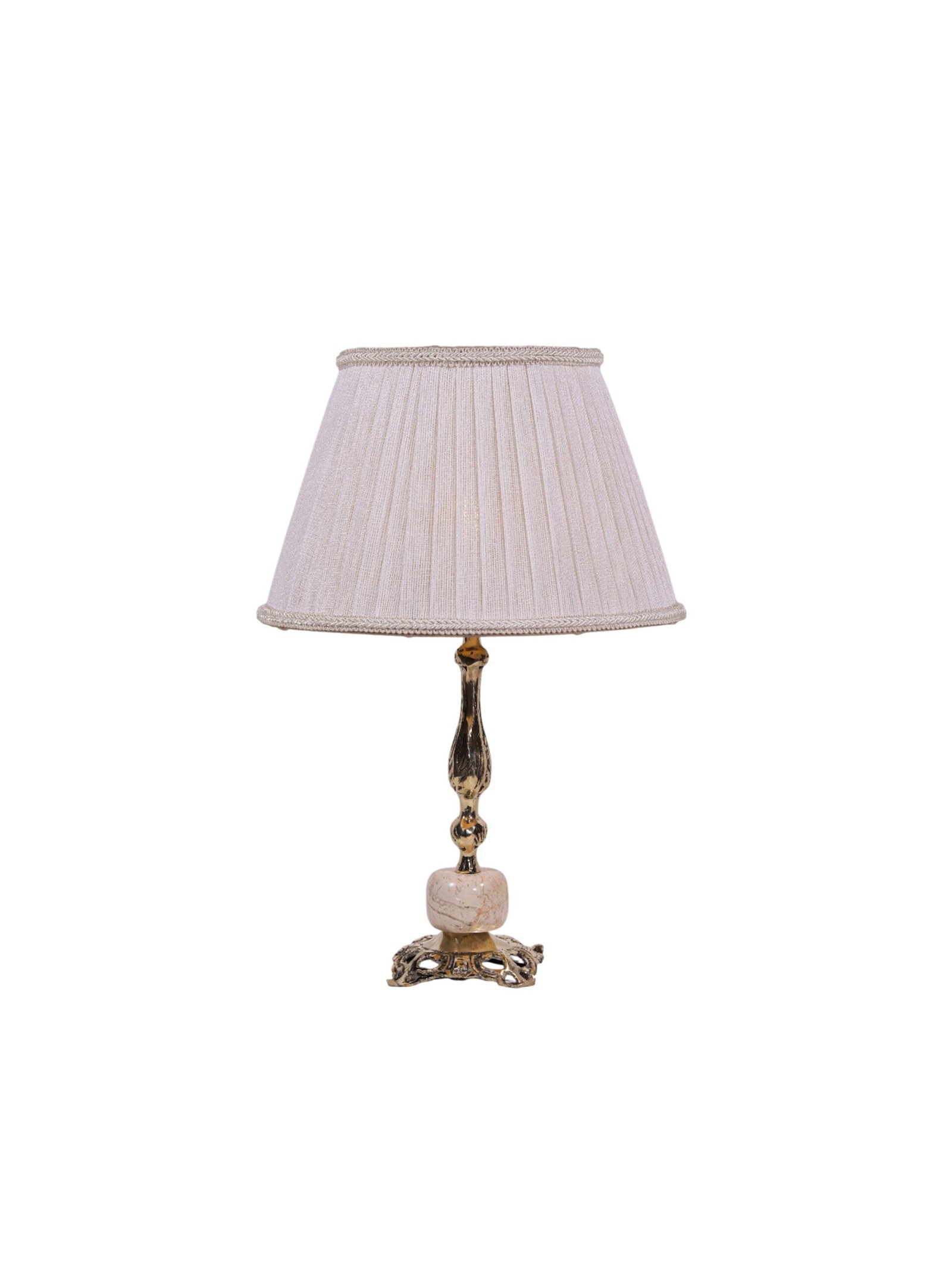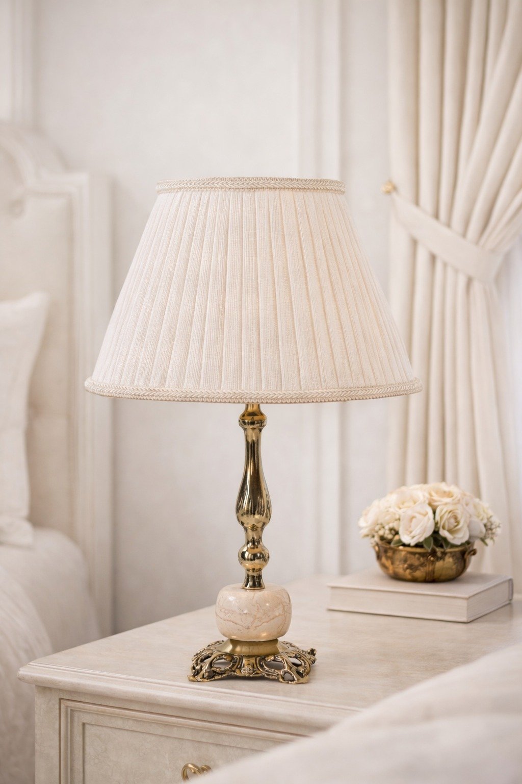 مصباح طاولة كلاسيكي فاخر مصنوع من النحاس بتصميم مميز وغطاء من الكتان المطوي.