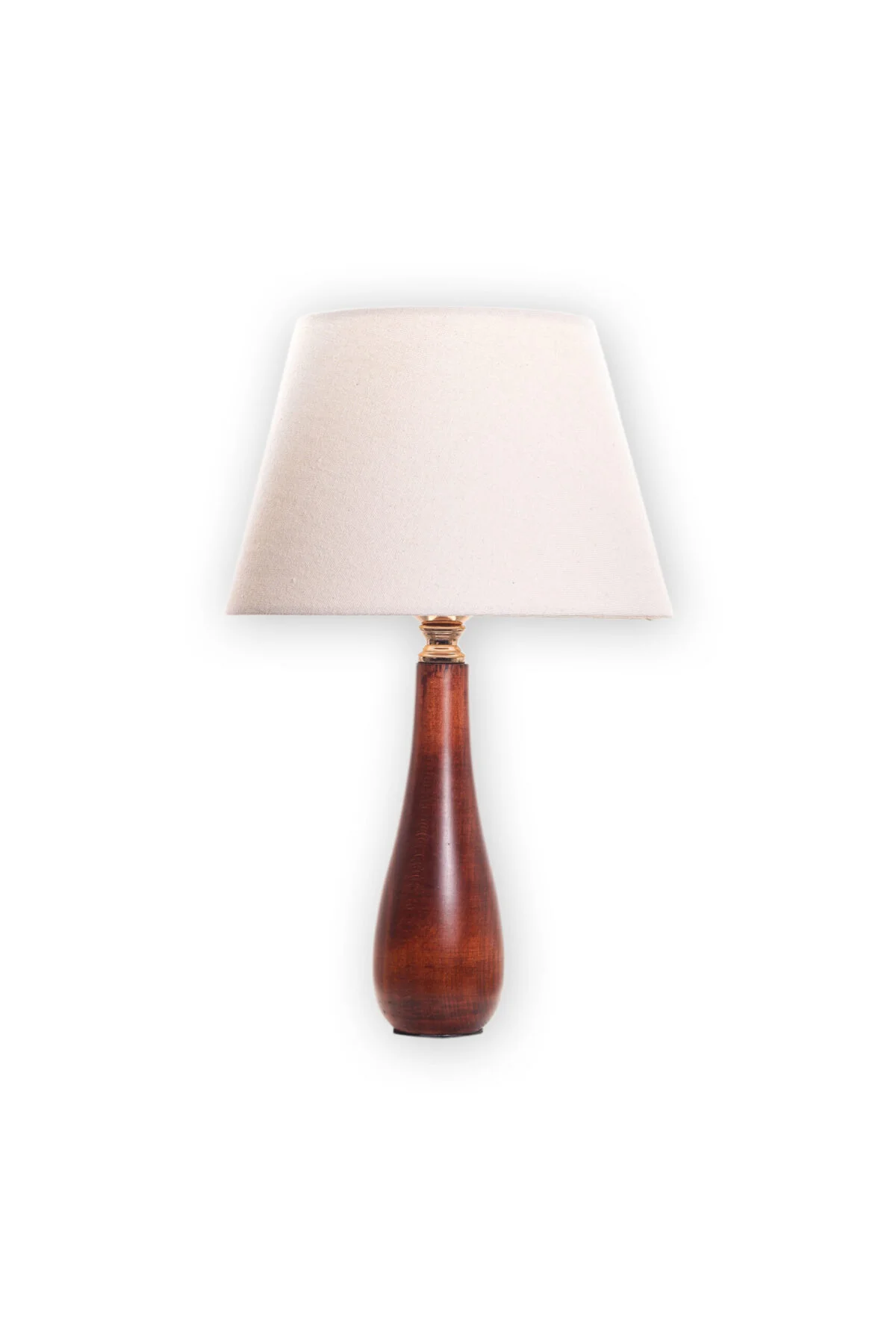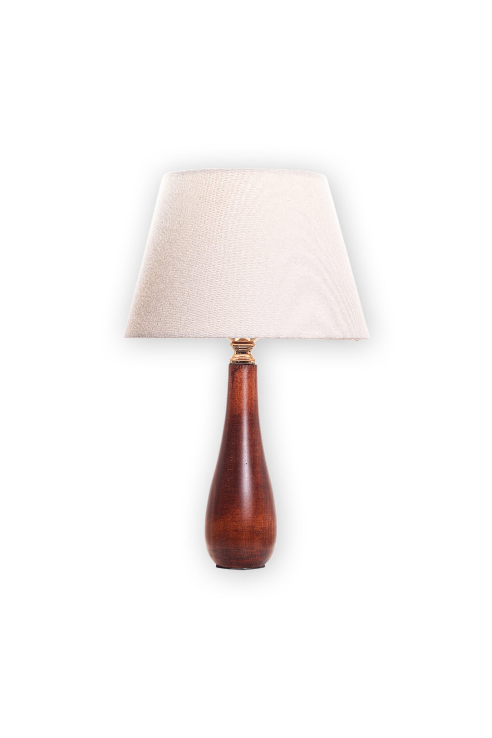 Table lamp with a smooth design made of beech wood in a dark brown finish.