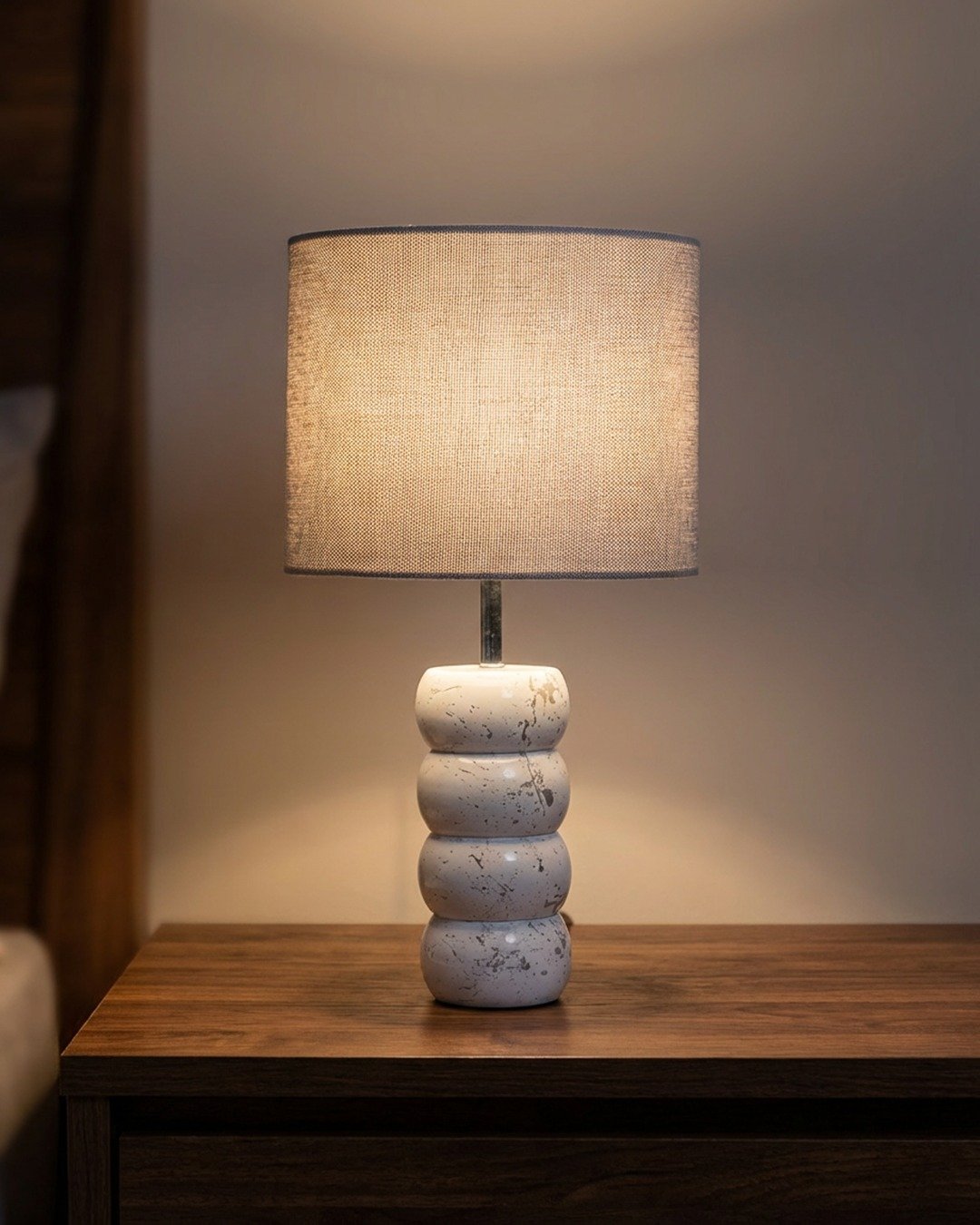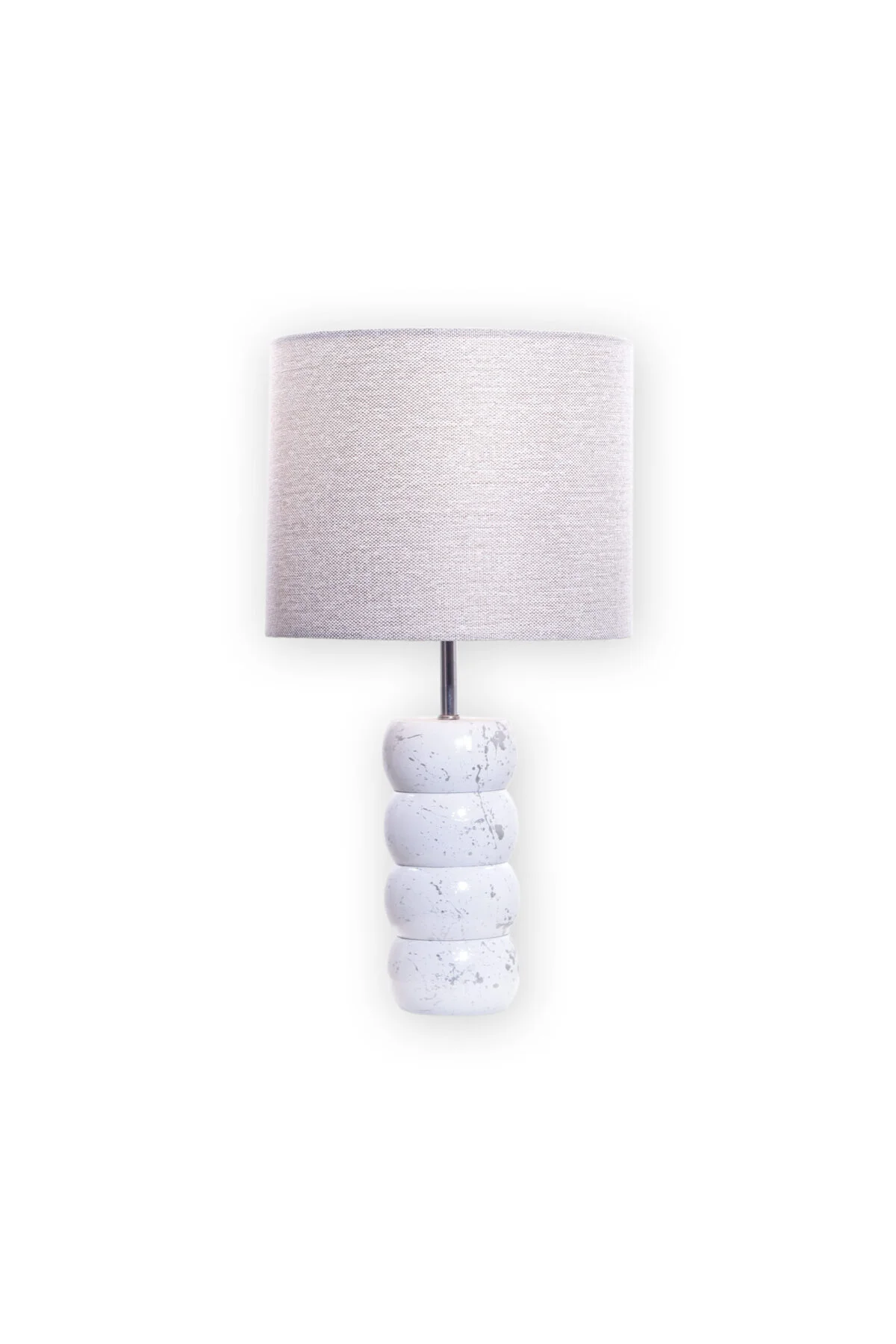 مصباح طاولة بتصميم فقاعي مصنوع من خشب الزان بلمسة نهائية من الرخام الأبيض.