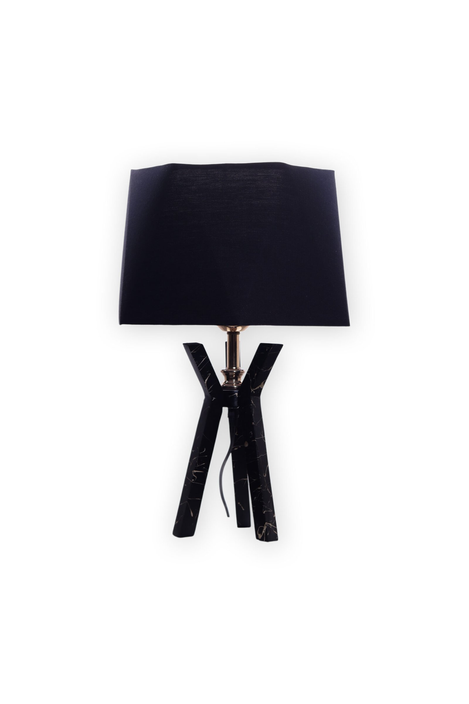 مصباح طاولة بتصميم ثلاثي القوائم عصري مصنوع من خشب الزان بلمسة نهائية سوداء فريدة من نوعها.
