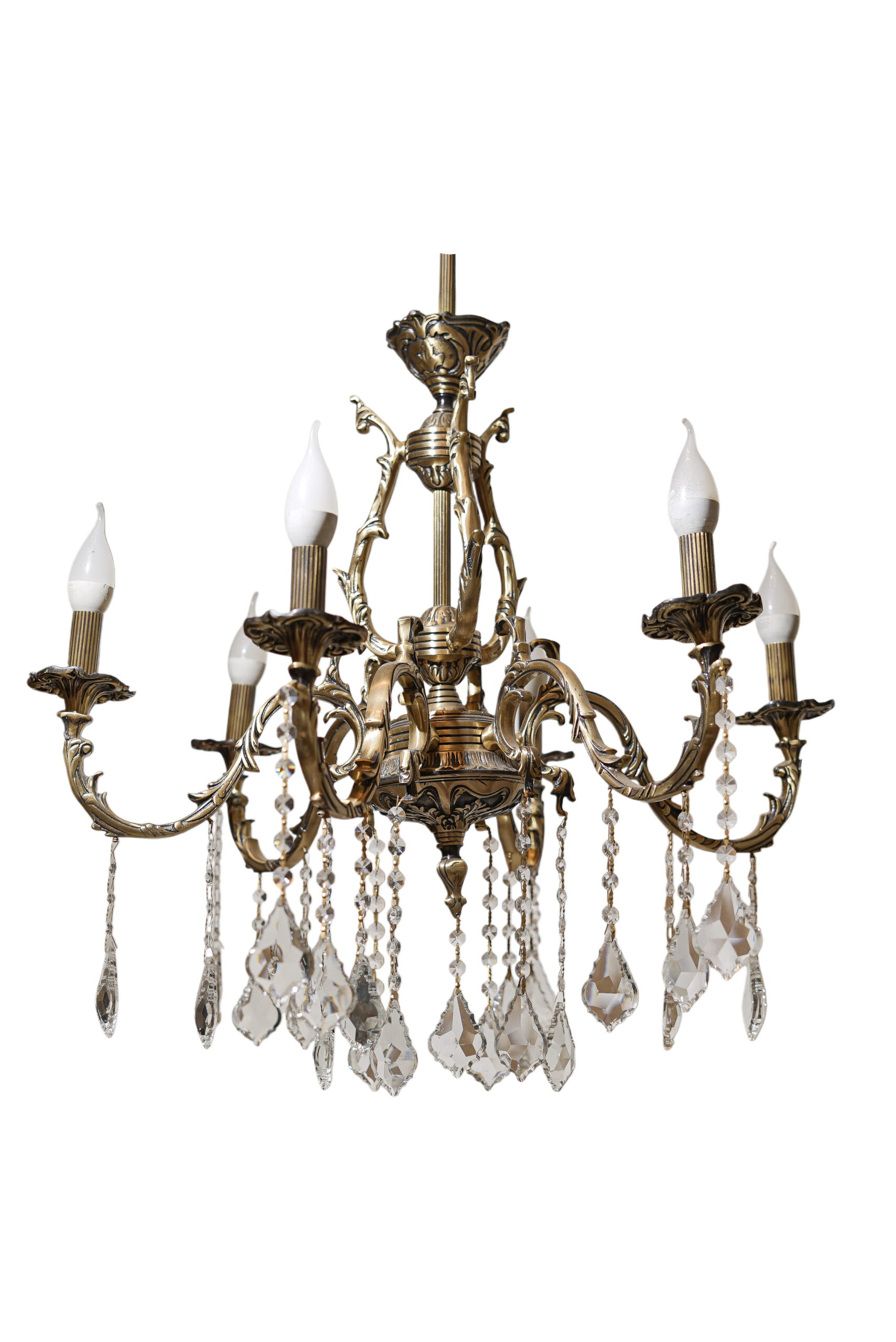 أضف لمسة من السحر الكلاسيكي إلى غرفتك مع نجفة “أنتيك جول” من وهج. تتميز هذه القطعة بـ 6 أذرع انسيابية مصنوعة من أجود أنواع النحاس الأصلي، مزخرفة بنقوش محفورة يدويًا تعكس براعة الحِرفية المصرية التقليدية. وتتدلّى صفوف من الكريستال النقي بأناقة لتوزّع الضوء بشكل ساحر، مما يجعلها الخيار المثالي للمساحات التي تبحث عن الفخامة والهدوء في آنٍ واحد، سواء في صالات الاستقبال أو غرف الطعام.