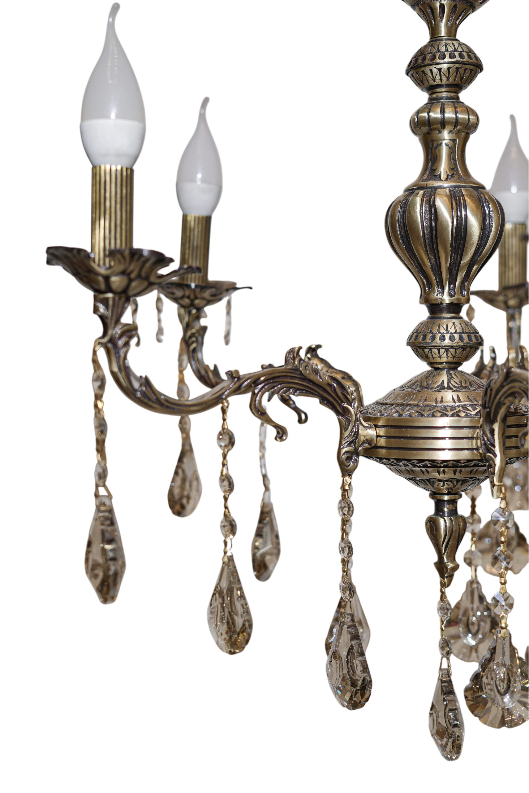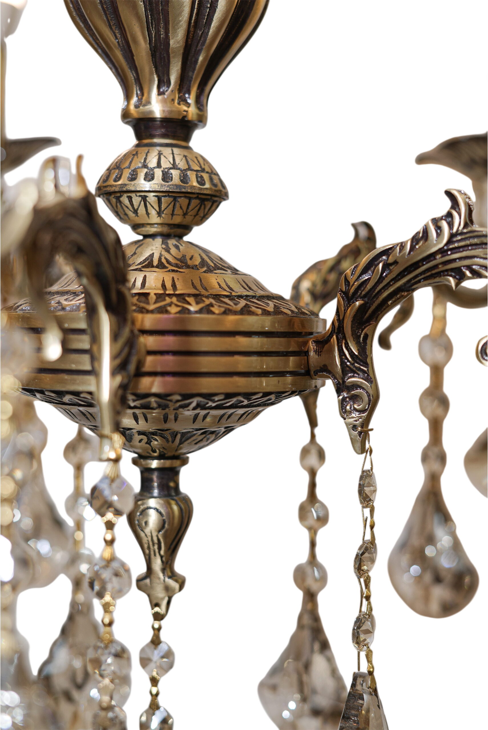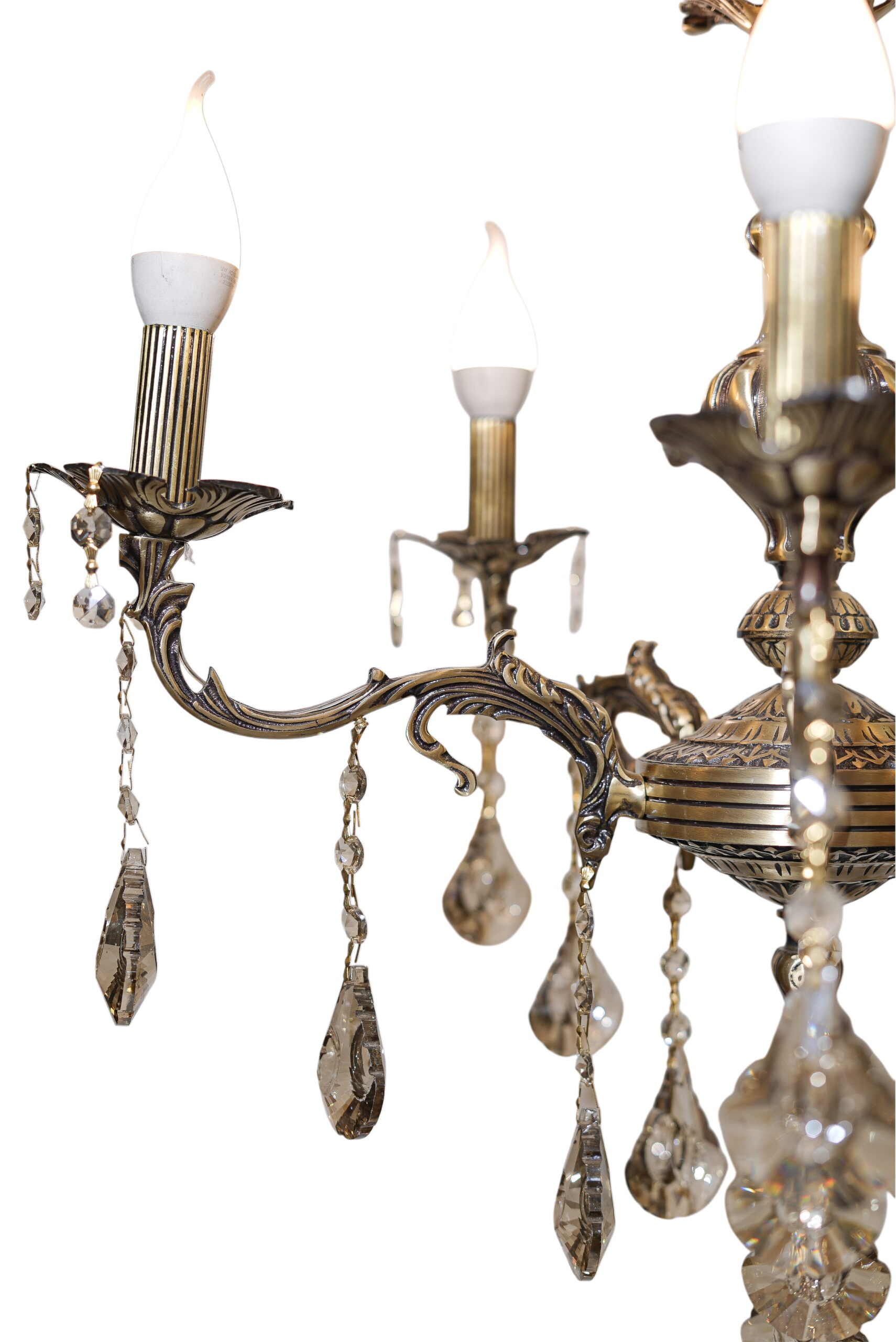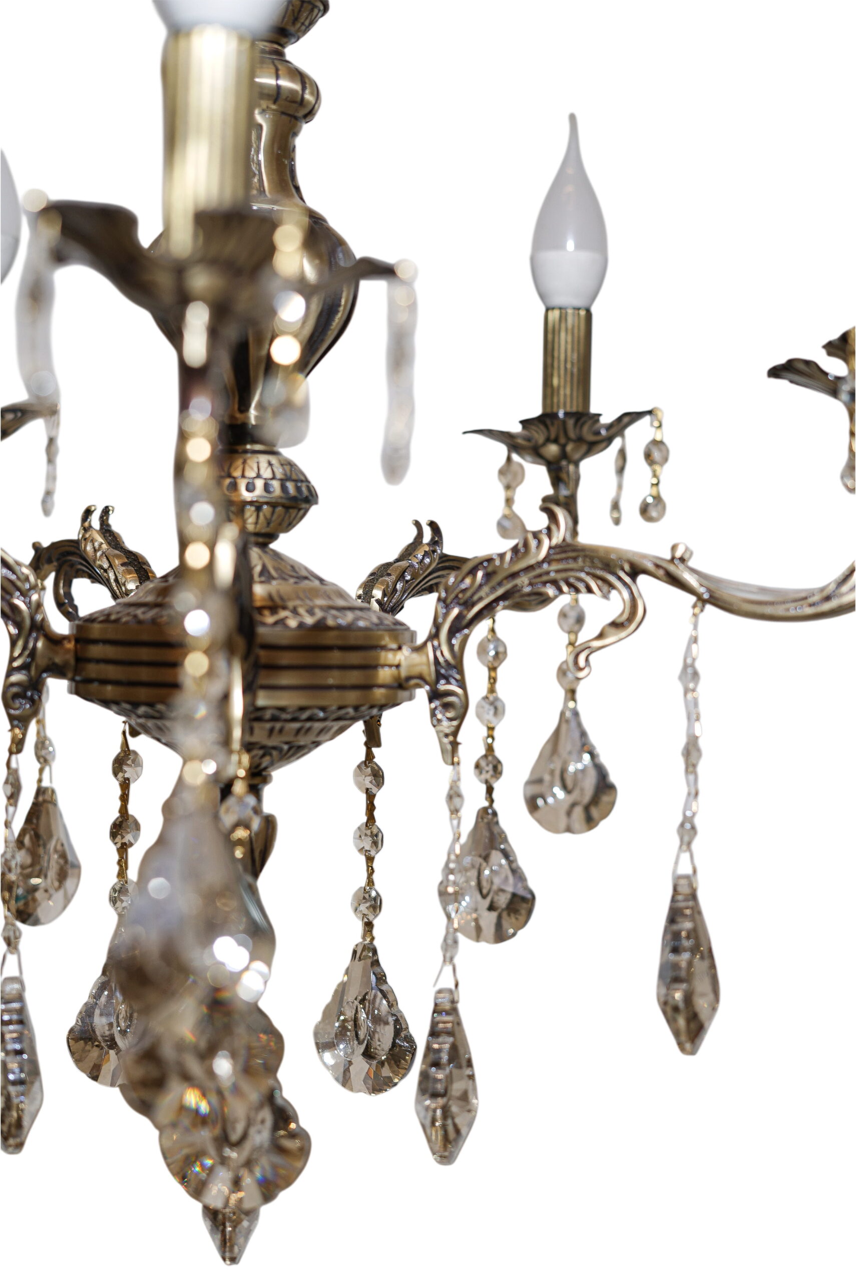يتجسّد التوازن المثالي بين الحجم والفخامة في نجفة “أنتيك ميدال” من وهج. صُممت بـ 5 أذرع من النحاس الأصلي مع تفاصيل فنية دقيقة، لتكون الخيار المثالي لغرف النوم الرئيسية، أو غرف الطعام متوسطة الحجم، أو المكاتب التنفيذية. ويزداد جمالها بقطرات الكريستال اللامعة التي تنثر الضوء بنعومة، مضيفة لمسة من الدفء والرقي الكلاسيكي إلى ديكورك الداخلي.