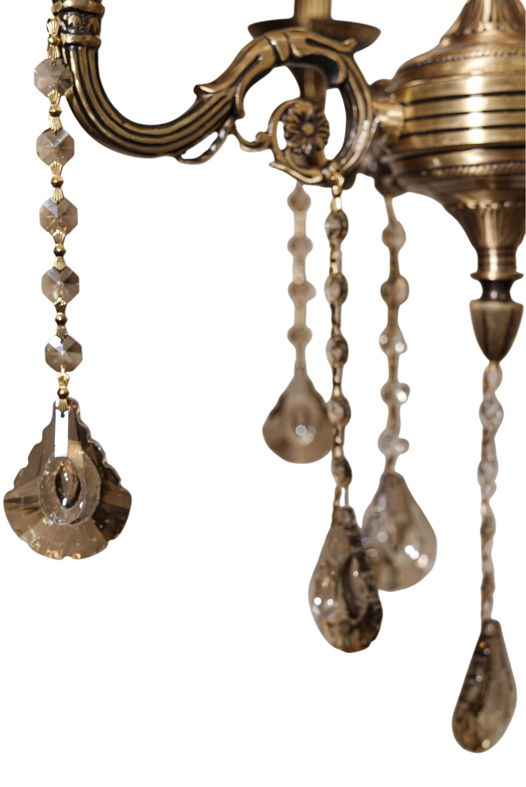 الخامة: نحاس أصلي 100% بتشطيب عتيق مطبّق يدويًا + كريستال عالي الجودة.