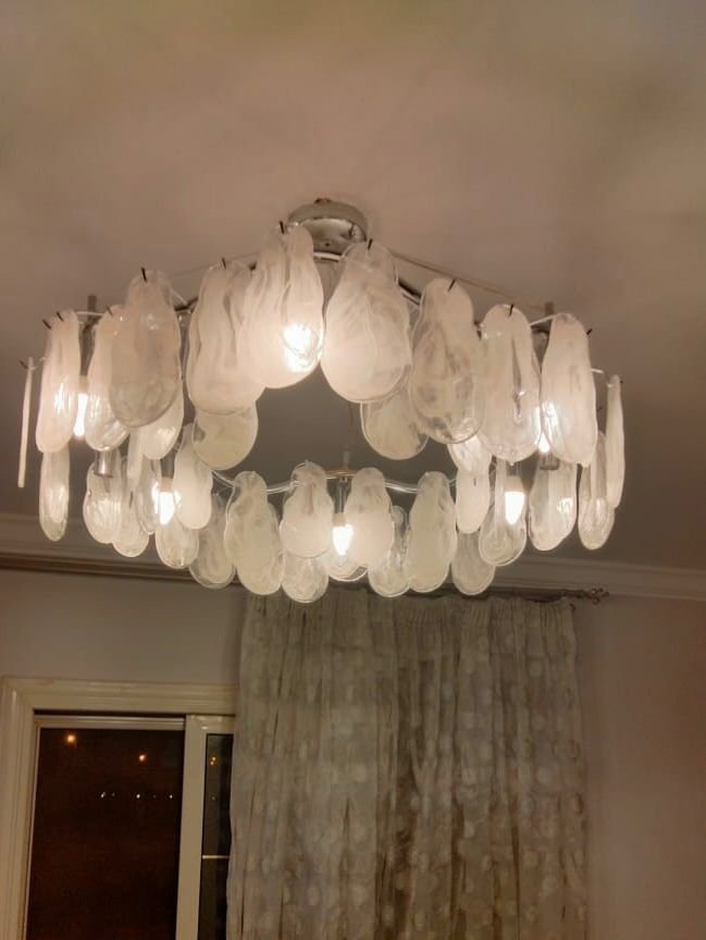 الخامات: إطار معدني عالي الجودة، عناصر بتلات زجاجية متجمدة/رخامية مصنوعة بشكل فردي/عناصر زجاجية رخامية/ورقية