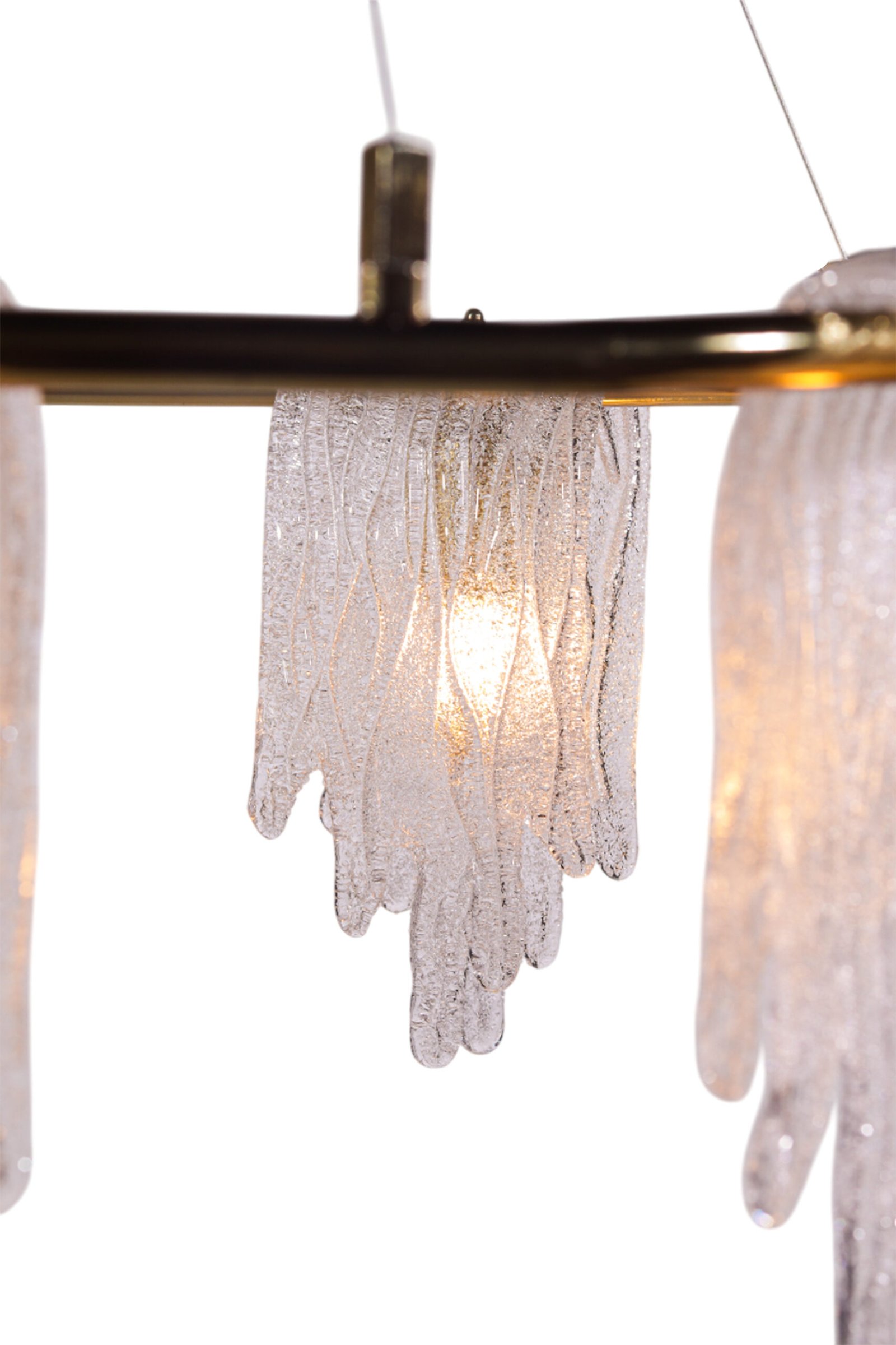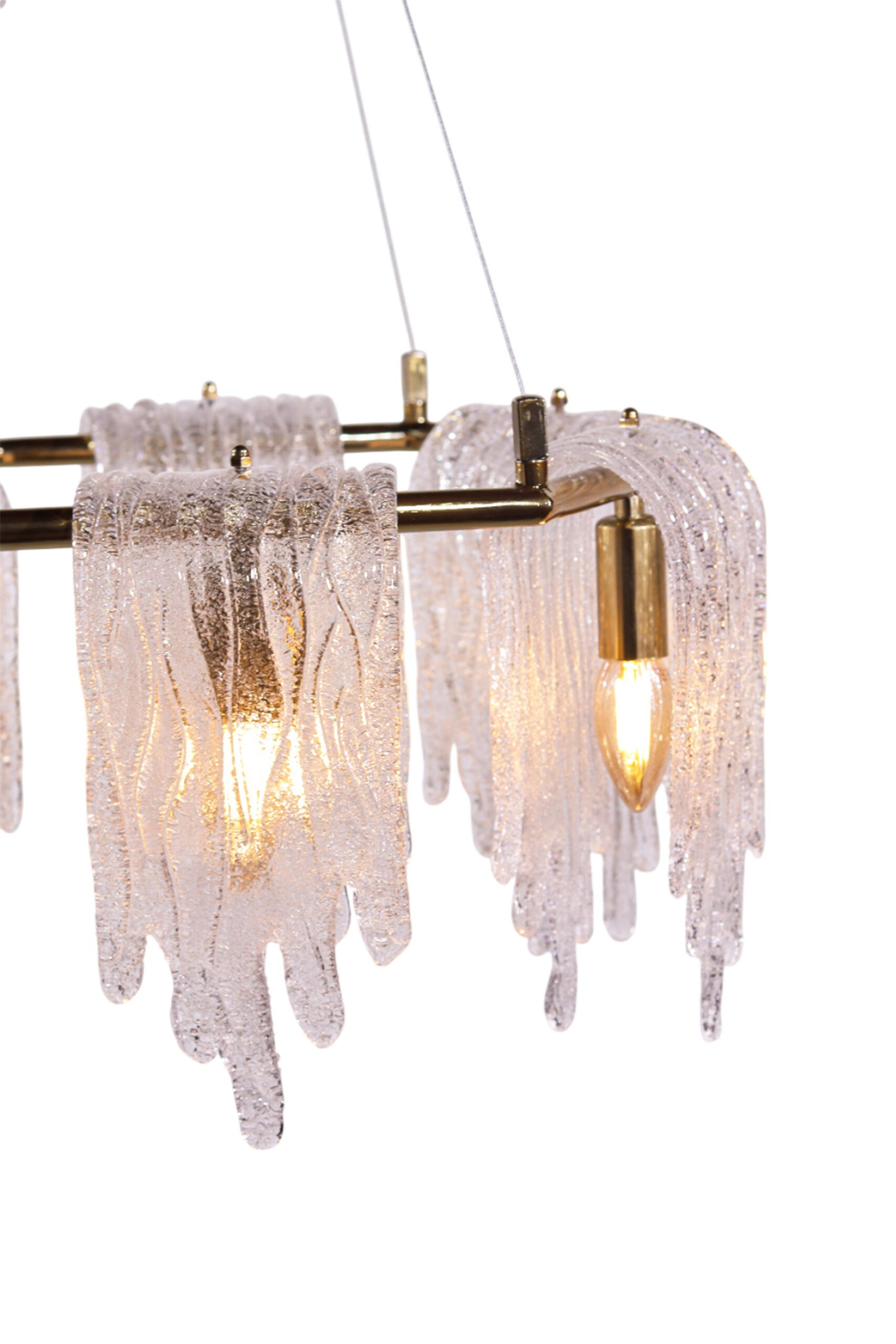 Redefine elegance with the “Hexagonal Crystal Rain” chandelier. This design combines the sharp modernity of a hexagonal gold frame with the soft, fluid look of cascading textured glass, creating a captivating play of light and shadow.