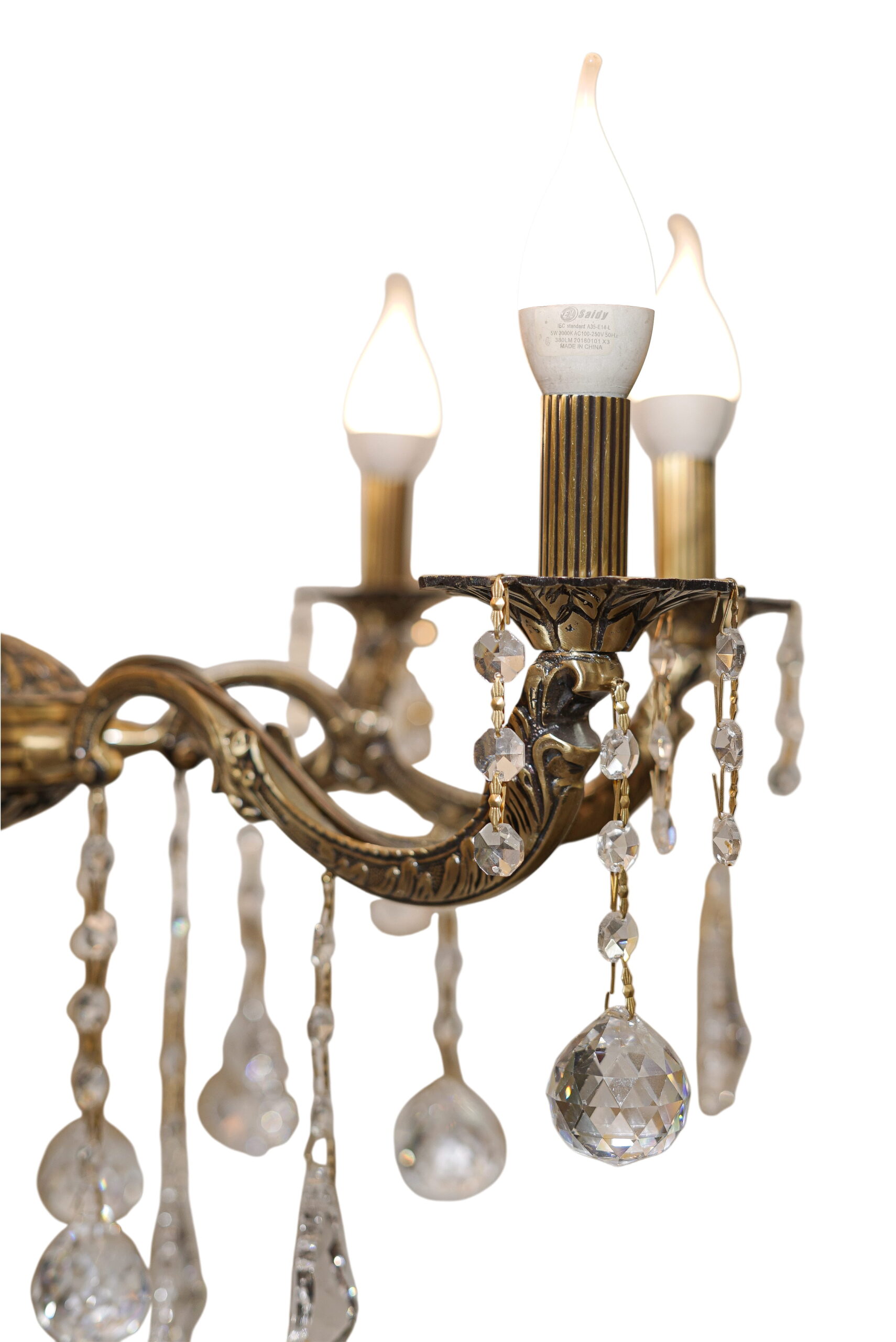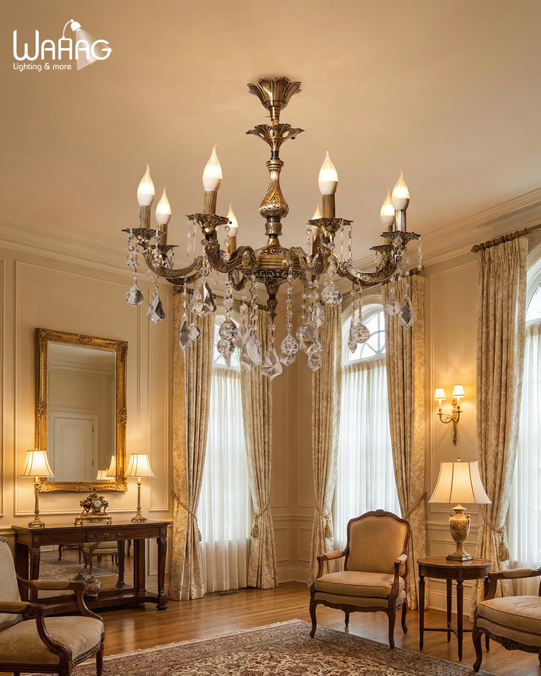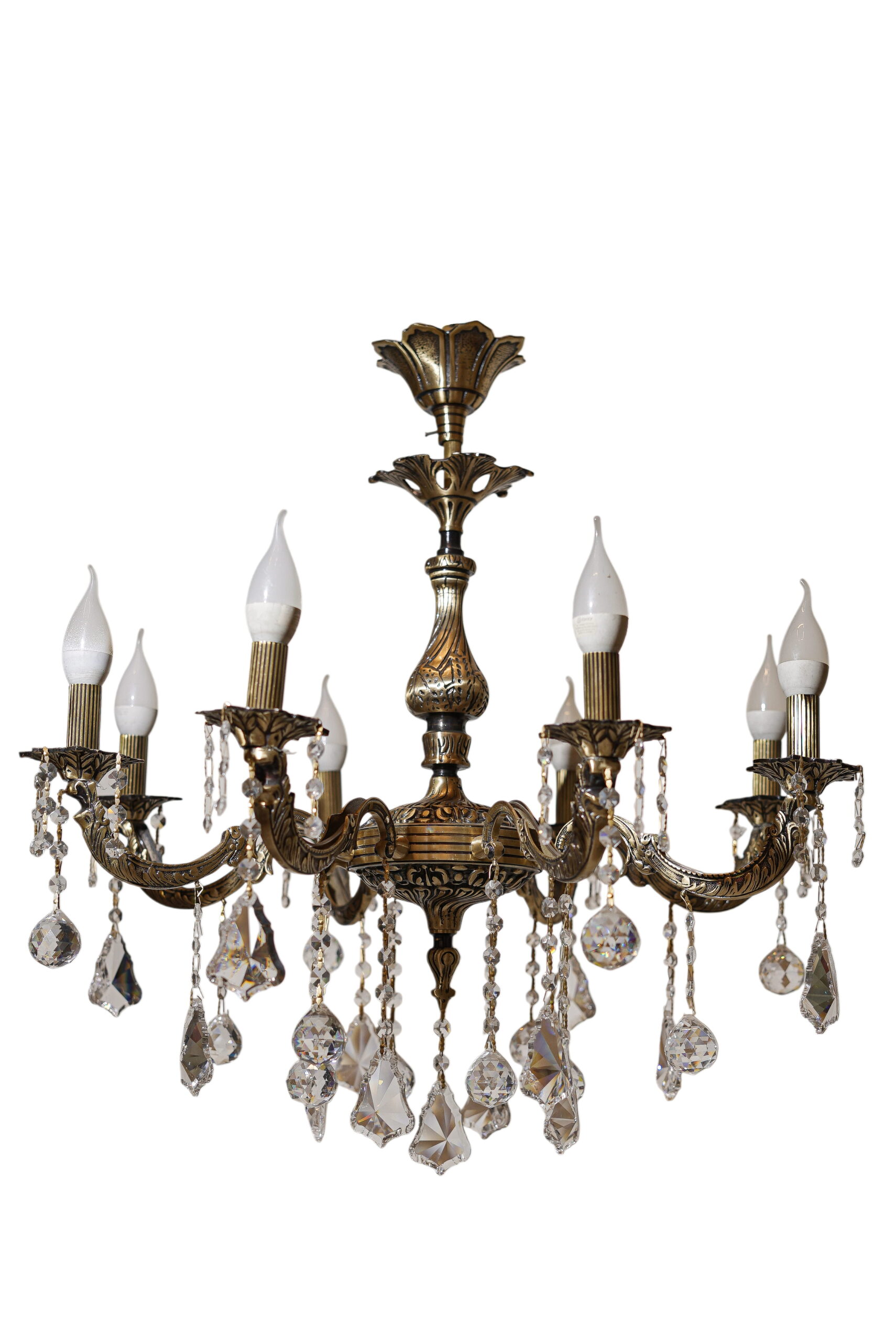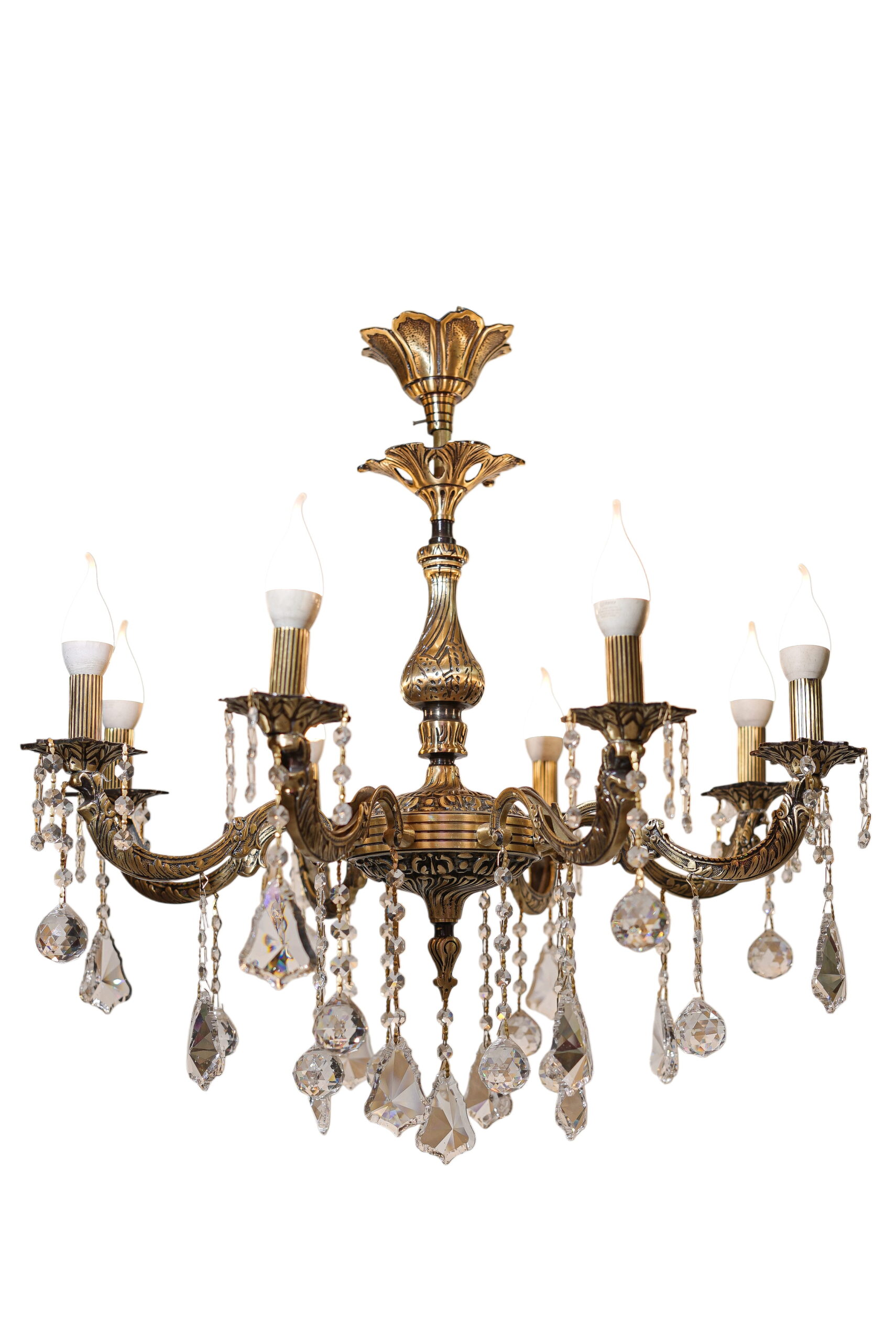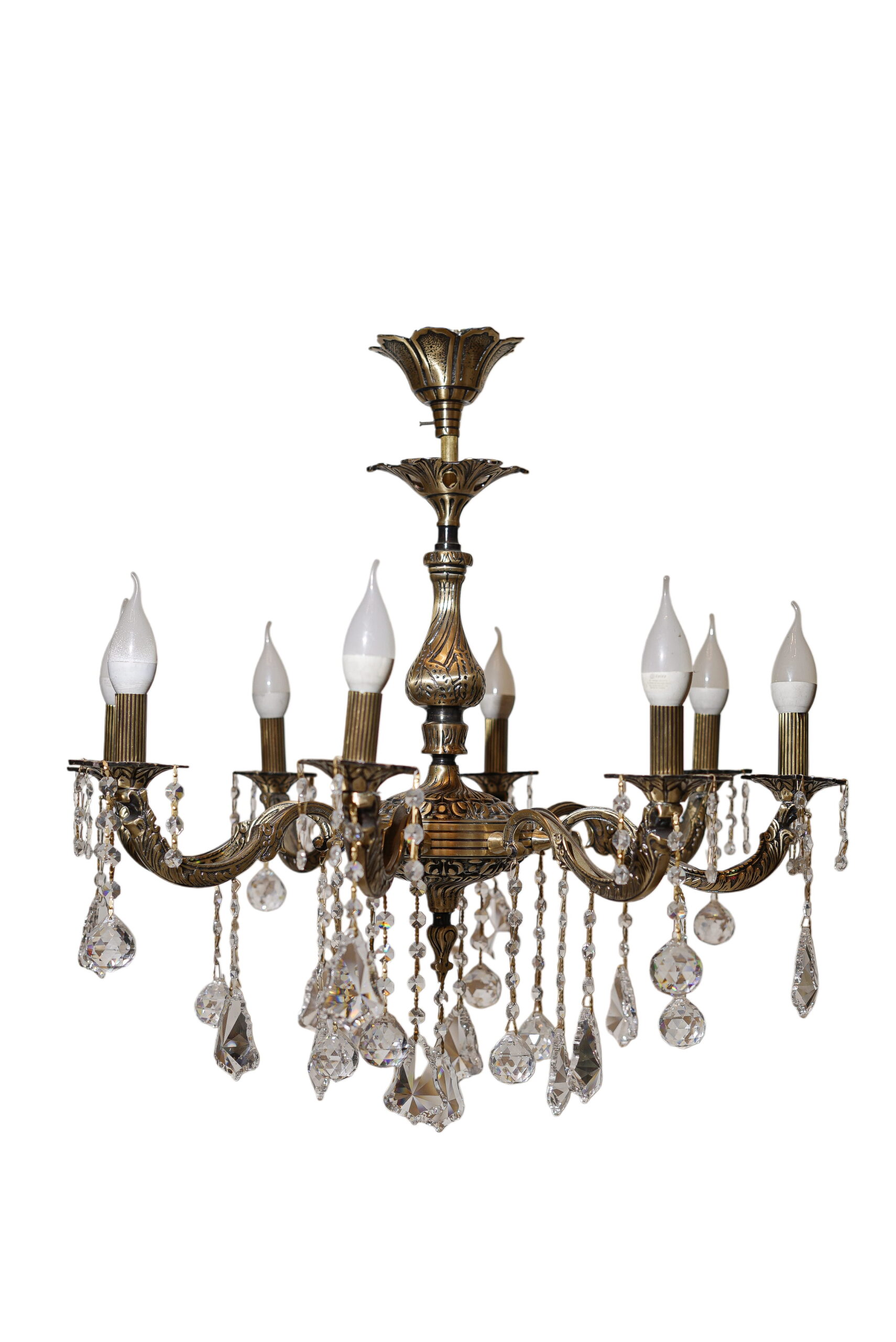 أضف لمسة من الهيبة والفخامة المطلقة إلى مساحتك مع نجفة “سلطانز كراون” من وهج. صُممت هذه التحفة بـ 8 أذرع من النحاس الأصلي الثقيل، مزخرفة بنقوش كلاسيكية محفورة يدويًا تُبرز عراقة التصميم. وبفضل حجمها الكبير وتوزيع الأذرع المتقن، توفّر إضاءة غنية للصالونات الواسعة وقاعات الاستقبال، بينما تضيف قطرات الكريستال المتدلّية بريقًا يملأ المكان بالدفء والرقي.