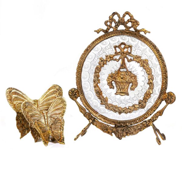تُعدّ هذه المنفضة الخيار الأمثل لمن يبحث عن الفخامة والتميز في ديكور مكتبه أو غرفة معيشته. فهي تمزج ببراعة بين نقاء الكريستال المصقول ولمعان النحاس الذهبي، وتتميز بمقبض مركزي مصمم على شكل ورقتين رقيقتين يمنحانها سحراً جمالياً خالداً.
