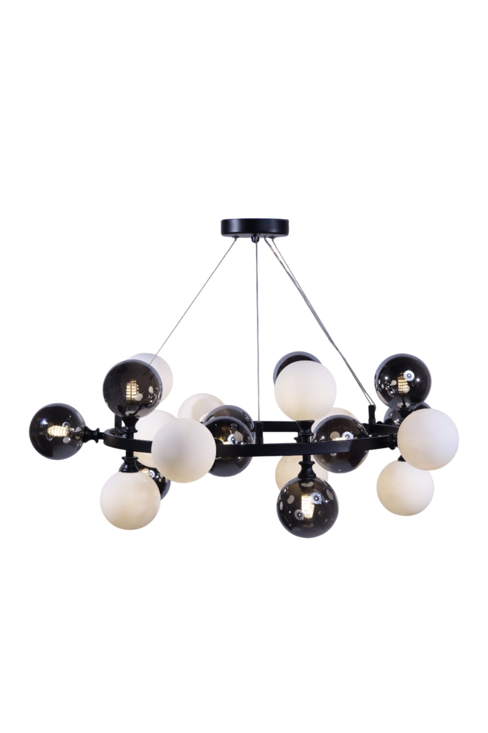 أضف لمسةً جريئةً من الفخامة العصرية مع ثريا “Galaxy Ring”. يتميز هذا التصميم اللافت بحلقة سوداء أنيقة تحمل 20 غطاءً زجاجيًا كرويًا، تُشبه كوكبة من الضوء تُضفي عمقًا وجاذبيةً على أي مساحة معاصرة.