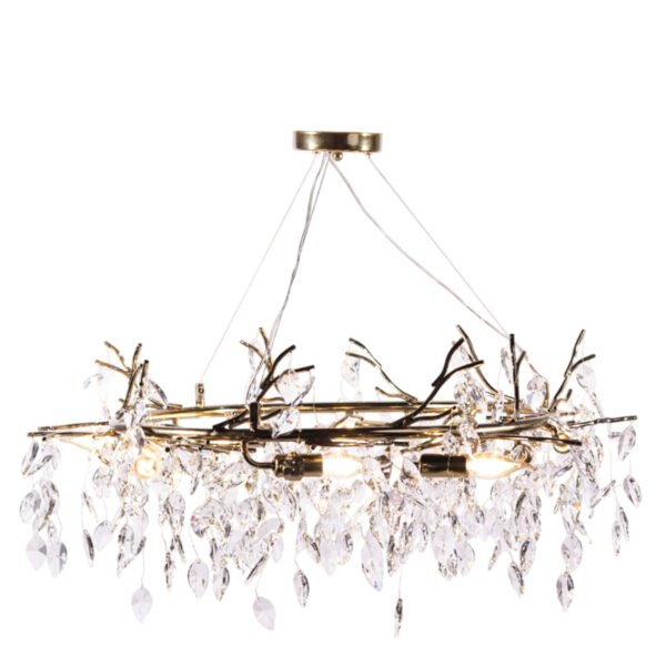 استمتع بفخامة نجفة كريستال جولدن لوريل بايركس مع تصميم أنيق من الكريستال والذهب، تضيف لمسة ديكور راقية وإضاءة مثالية للصالون وغرفة المعيشة.