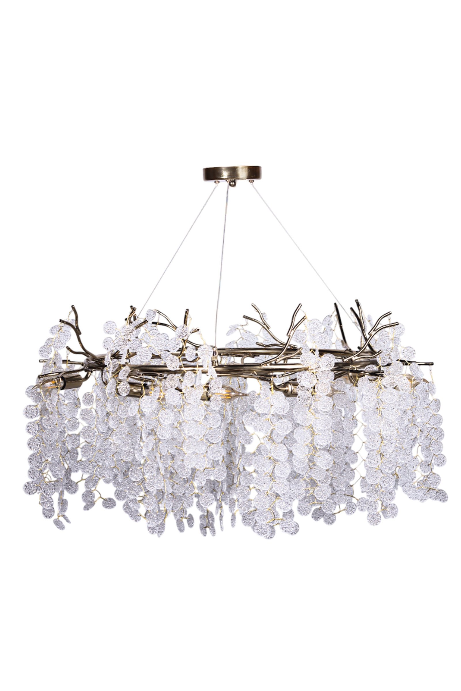 Make your home’s sky sparkle with the “Crystal Cloud” chandelier. A magical design that mimics an illuminated cloud, where golden branches intertwine with hundreds of glowing crystal pieces.