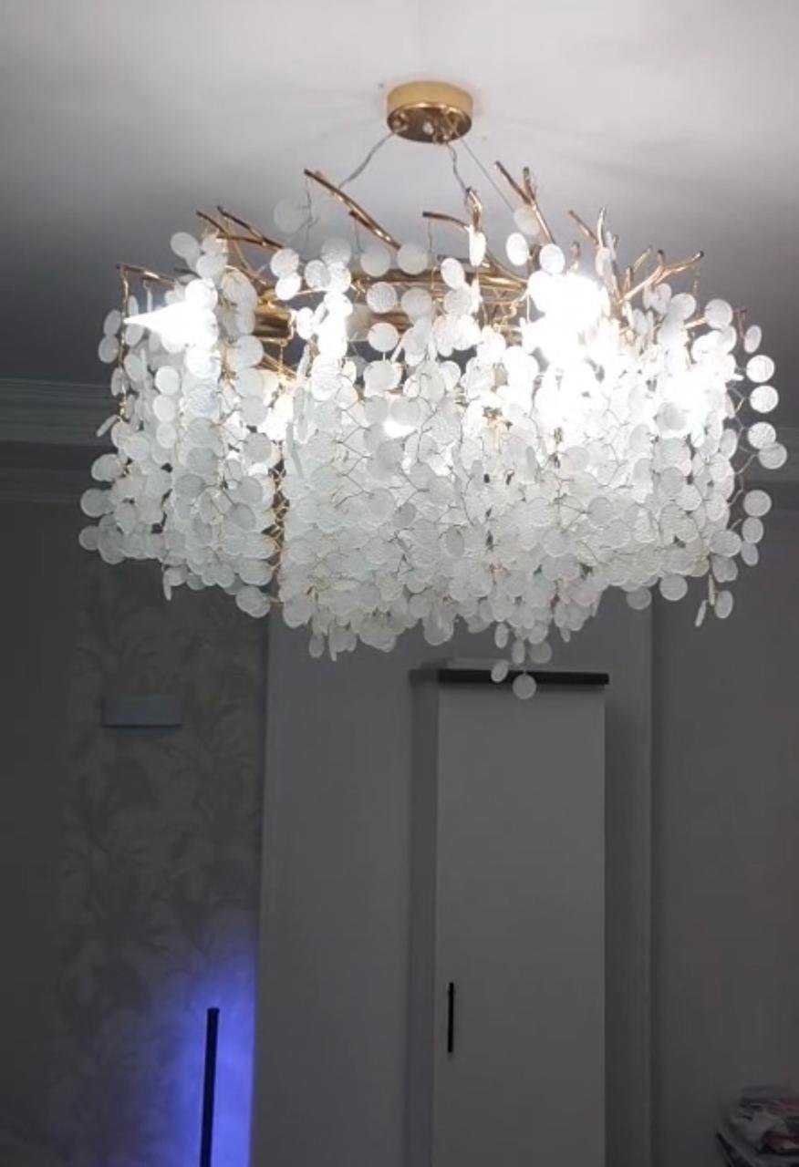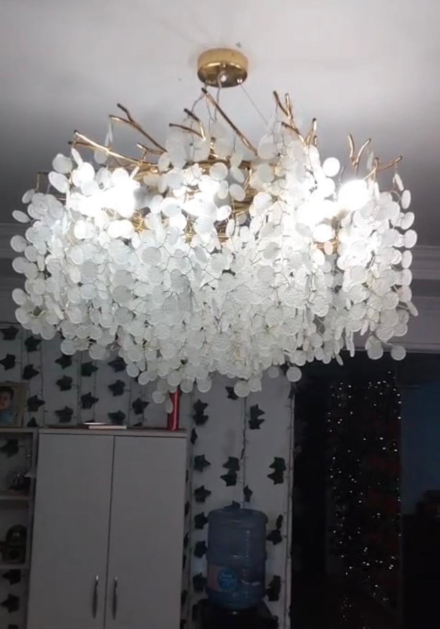 أضيئوا سماء منزلكم بثريا “السحابة الكريستالية”. تصميم ساحر يُحاكي سحابةً مُضاءة، حيث تتشابك أغصانها الذهبية مع مئات القطع الكريستالية المتوهجة.