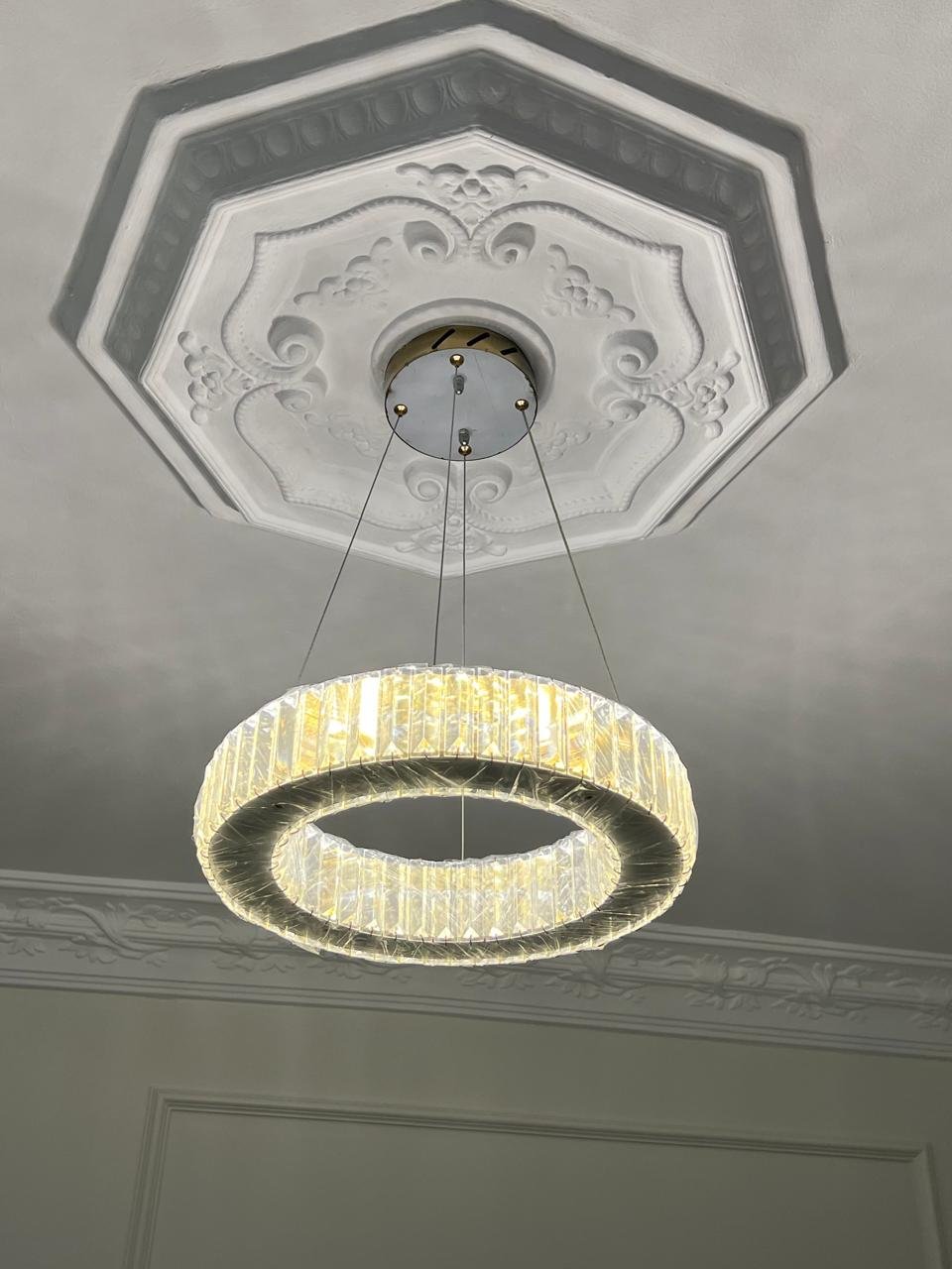 ارتقِ بمنزلك مع الثريا الكريستالية الحديثة ”Luminous Cascade“. تتميز هذه الثريا بتصميم أنيق وإضاءة LED مدمجة لتضفي أناقة عصرية على أي مساحة.