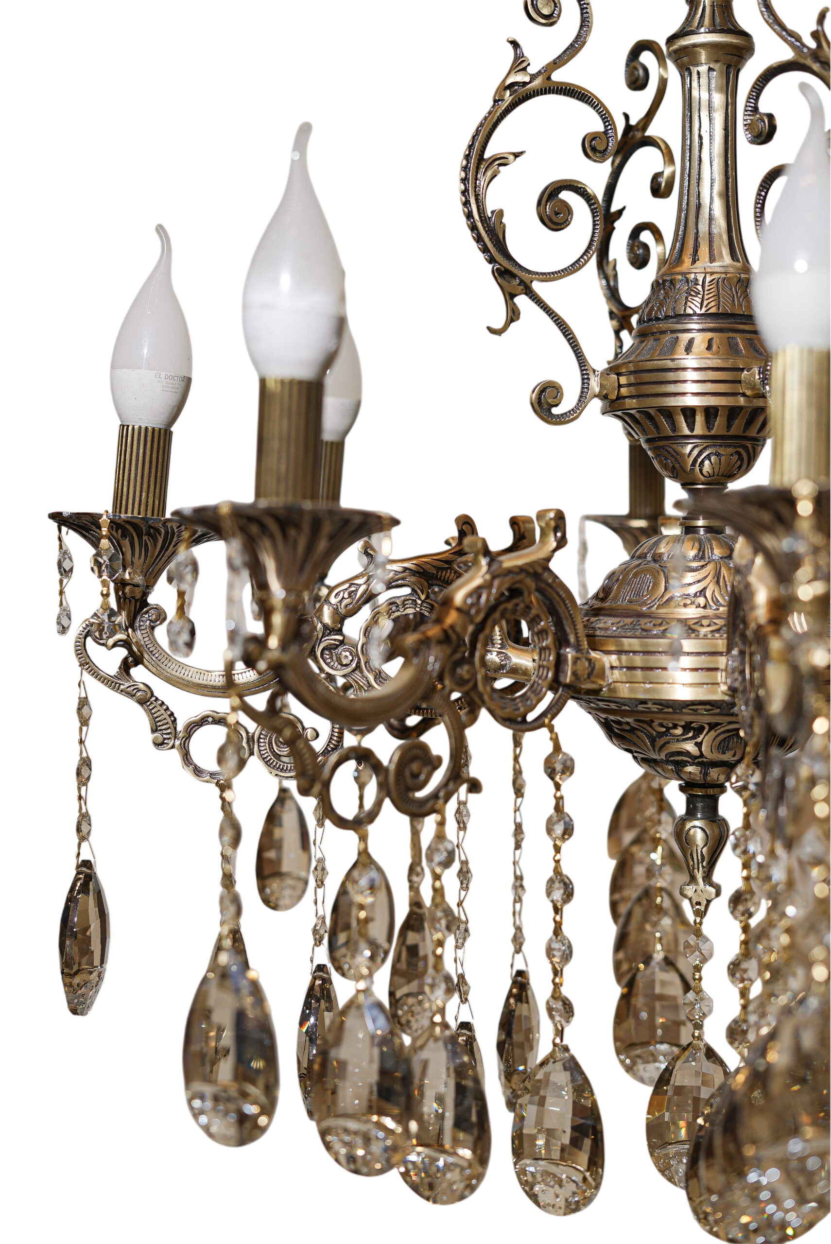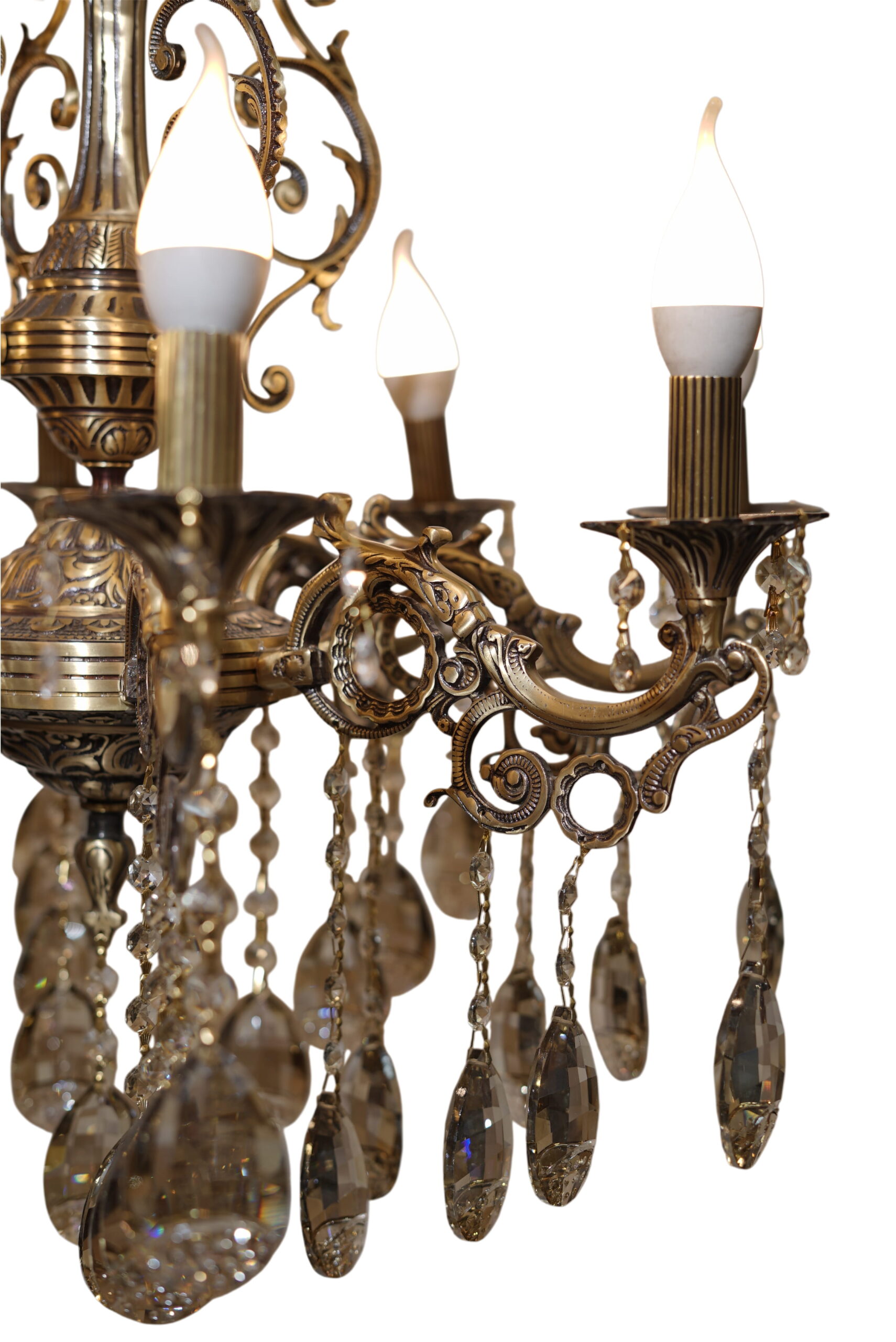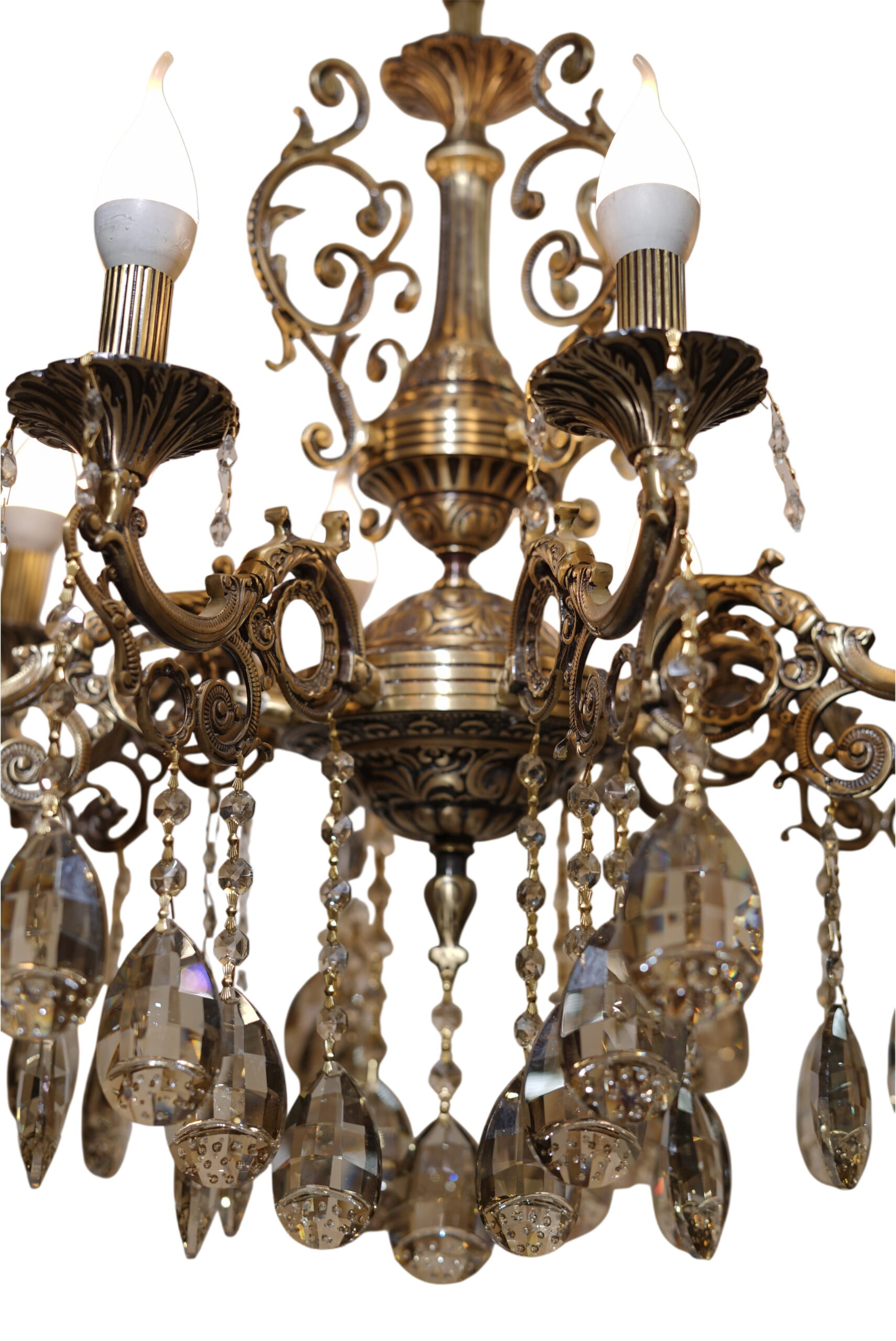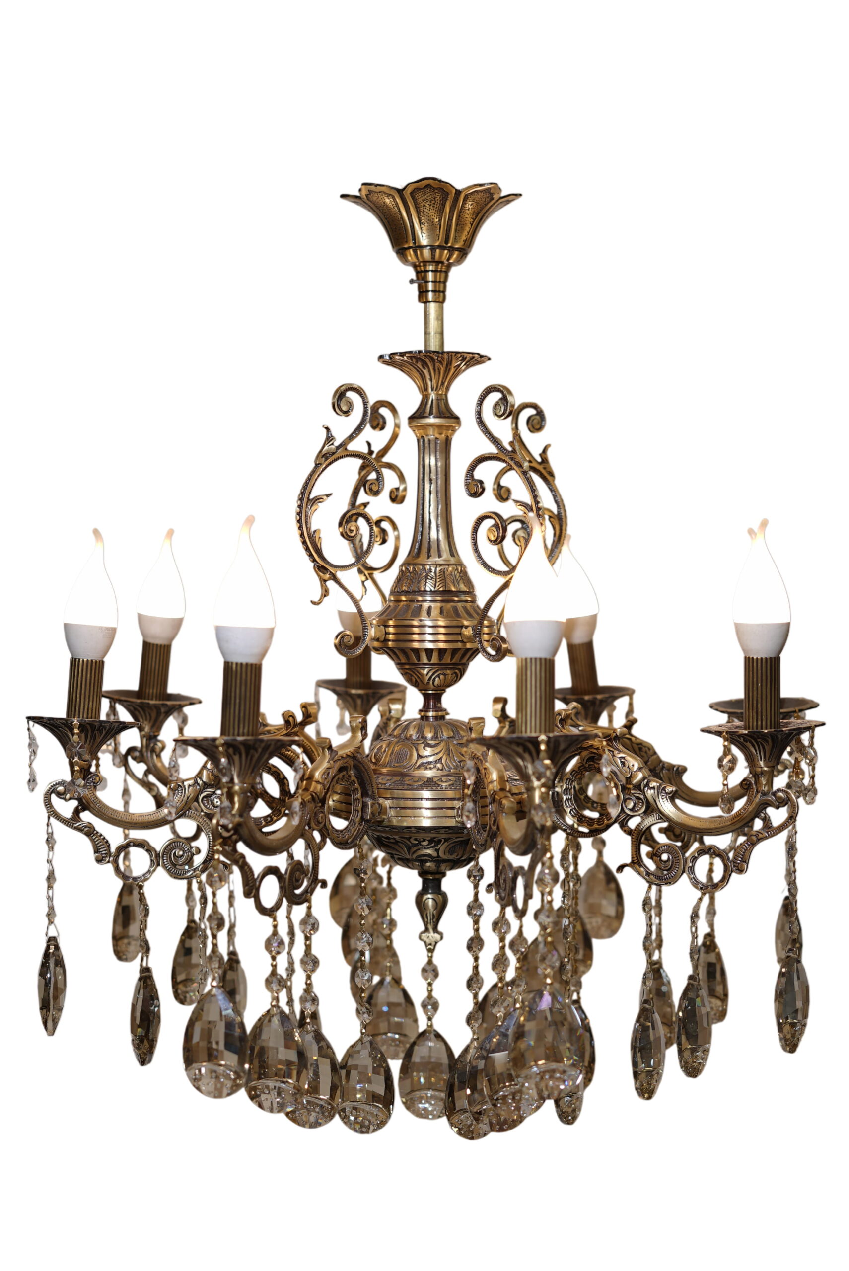 Bring the opulence of historic palaces into the heart of your home with the “Heritage Queen” chandelier from Wahag. A masterpiece crafted from masterfully hand-engraved authentic brass, featuring 8 fluid arms that provide rich, comprehensive lighting for grand spaces. Adorned with high-purity imported crystals that reflect light with warm, enchanting tones, it is the perfect centerpiece for luxurious salons seeking distinction and authenticity.