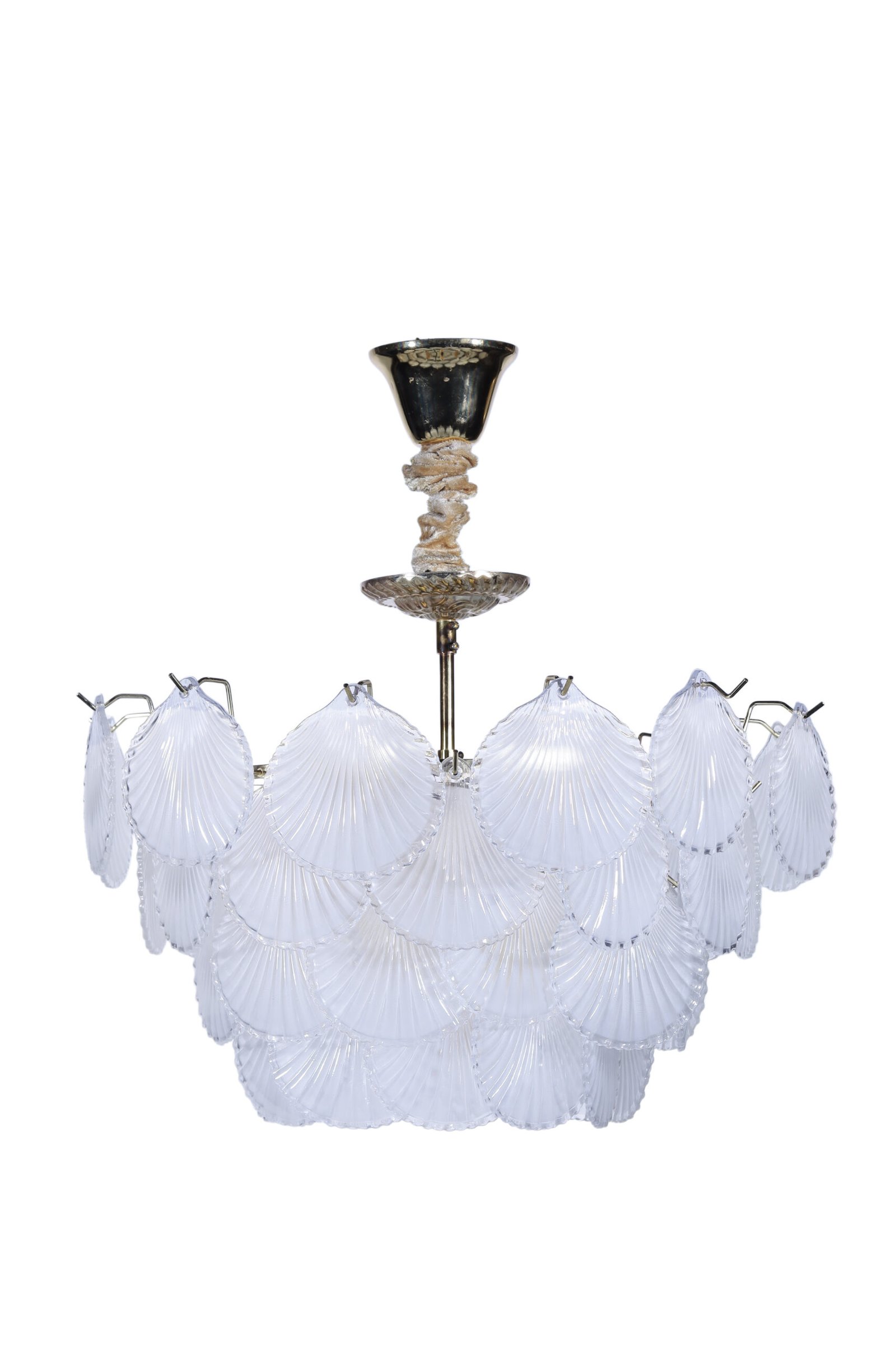 Inspired by the treasures of the ocean, the Maris chandelier features unique glass plates shaped like delicate sea shells arranged in breathtaking tiers. The frosted glass brilliance blends with elegant golden accents to create soft, warm lighting, making it an exceptional “New Classic” piece that adds special charm to luxury living rooms or bedrooms.