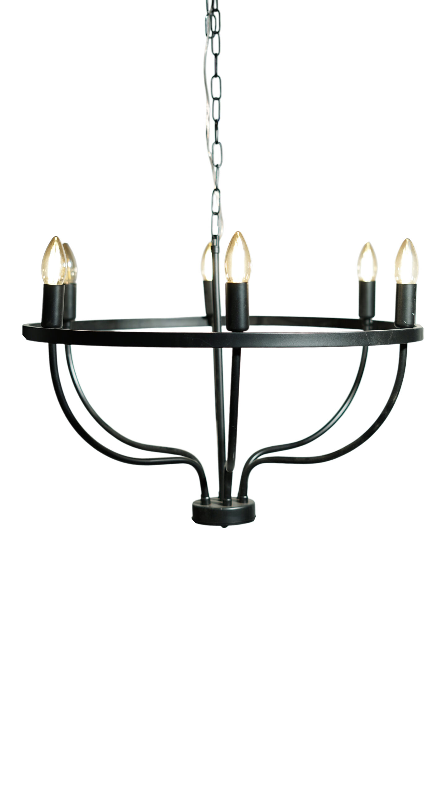 Introduce a bold, sophisticated statement to your space with the Black Ring Chandelier. This design masterfully blends modern industrial aesthetics with the timeless silhouette of a candelabra. The matte black finish offers a sense of refined elegance and strength, making it a perfect fit for contemporary living rooms, dining areas, or modern offices. With its 6-light configuration, it ensures your space is bathed in a warm and inviting glow.
