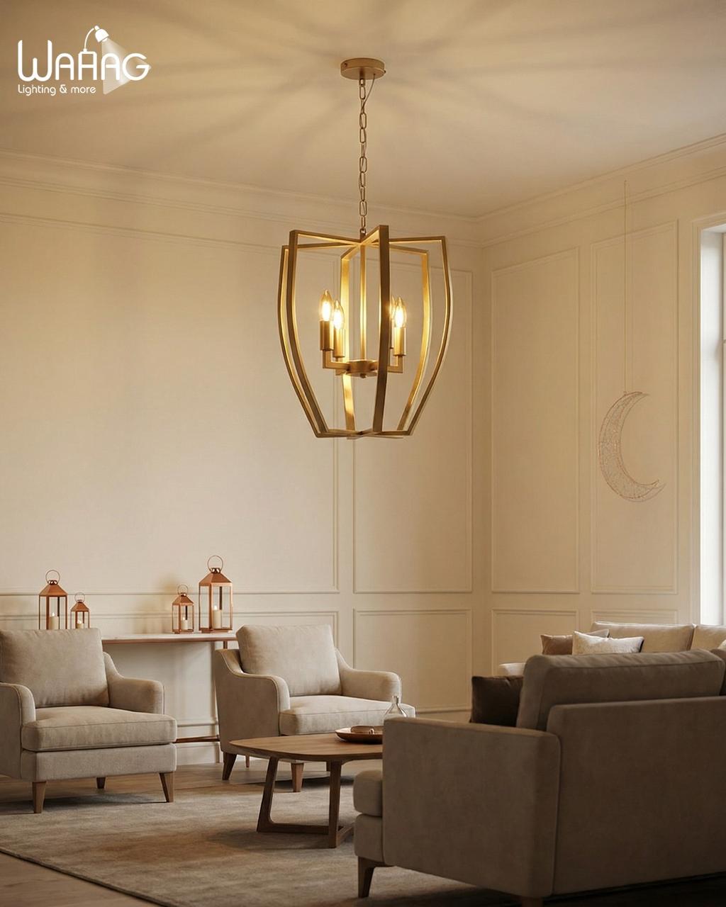 Experience the perfect blend of minimalist design and sophisticated elegance with the Golden Lantern Chandelier. Its open geometric frame is designed to disperse light evenly, creating an airy and luxurious feel in any room. Crafted from high-grade electrostatic-coated iron, this piece guarantees exceptional durability and a timeless finish, making it a stellar addition to both modern and neo-classic interiors.