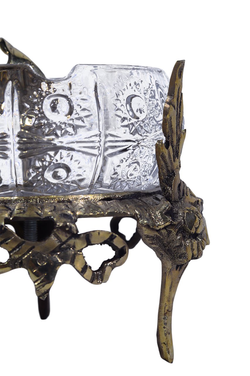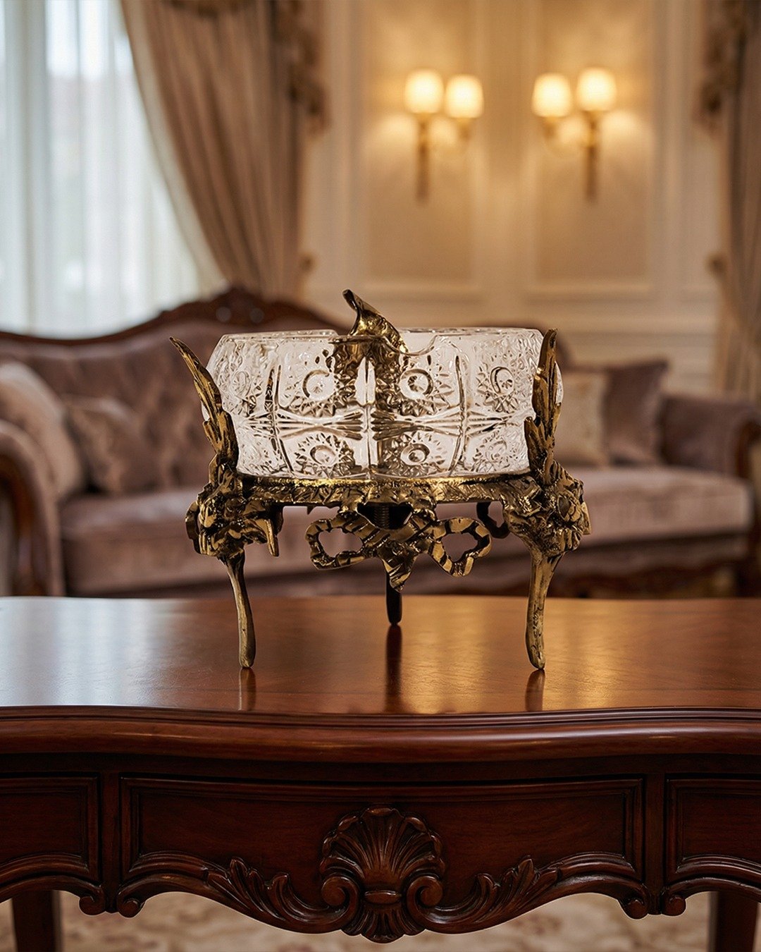 A classic masterpiece blending the clarity of engraved imported glass with the luxury of finely crafted brass. Designed to be an exceptional decor piece that adds a touch of vintage sophistication to your home or office tabletops.