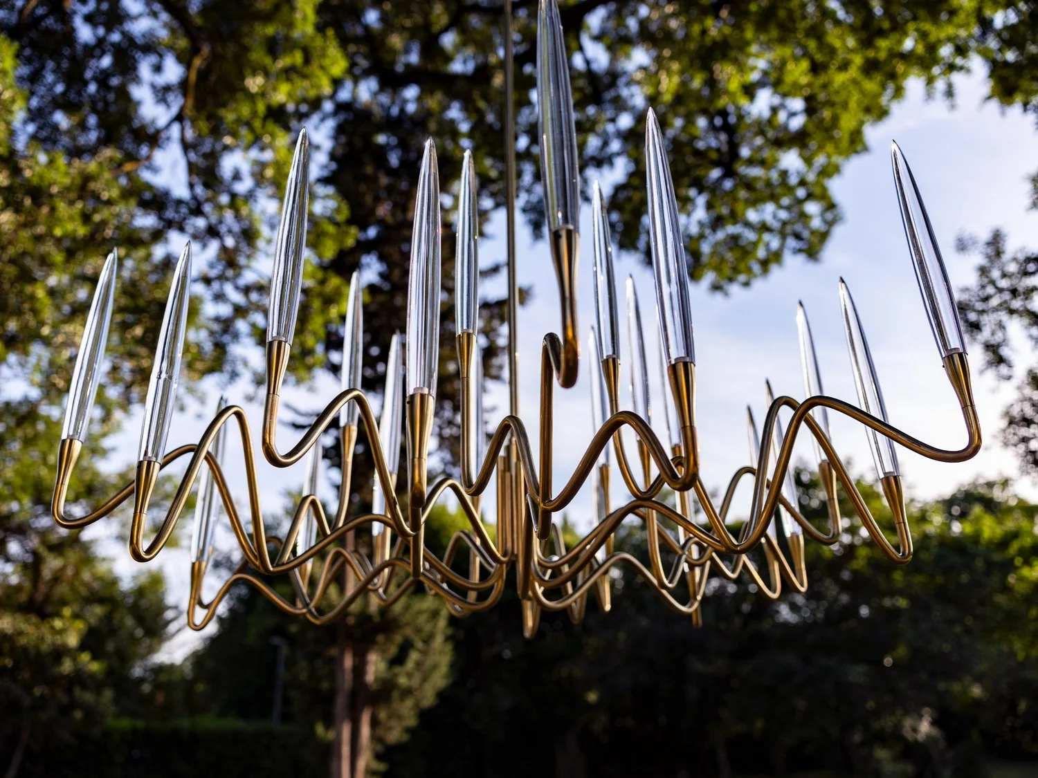 The Symphony Chandelier is a true masterpiece of avant-garde lighting. Featuring 18 artistically curved arms in a premium Oxide finish, this piece creates a rhythmic visual flow that captivates the eye. The elegant spear-like light fixtures provide a brilliant and sophisticated glow, making it a perfect statement piece for modern living rooms, dining areas, or luxury suites looking for a touch of creative flair.