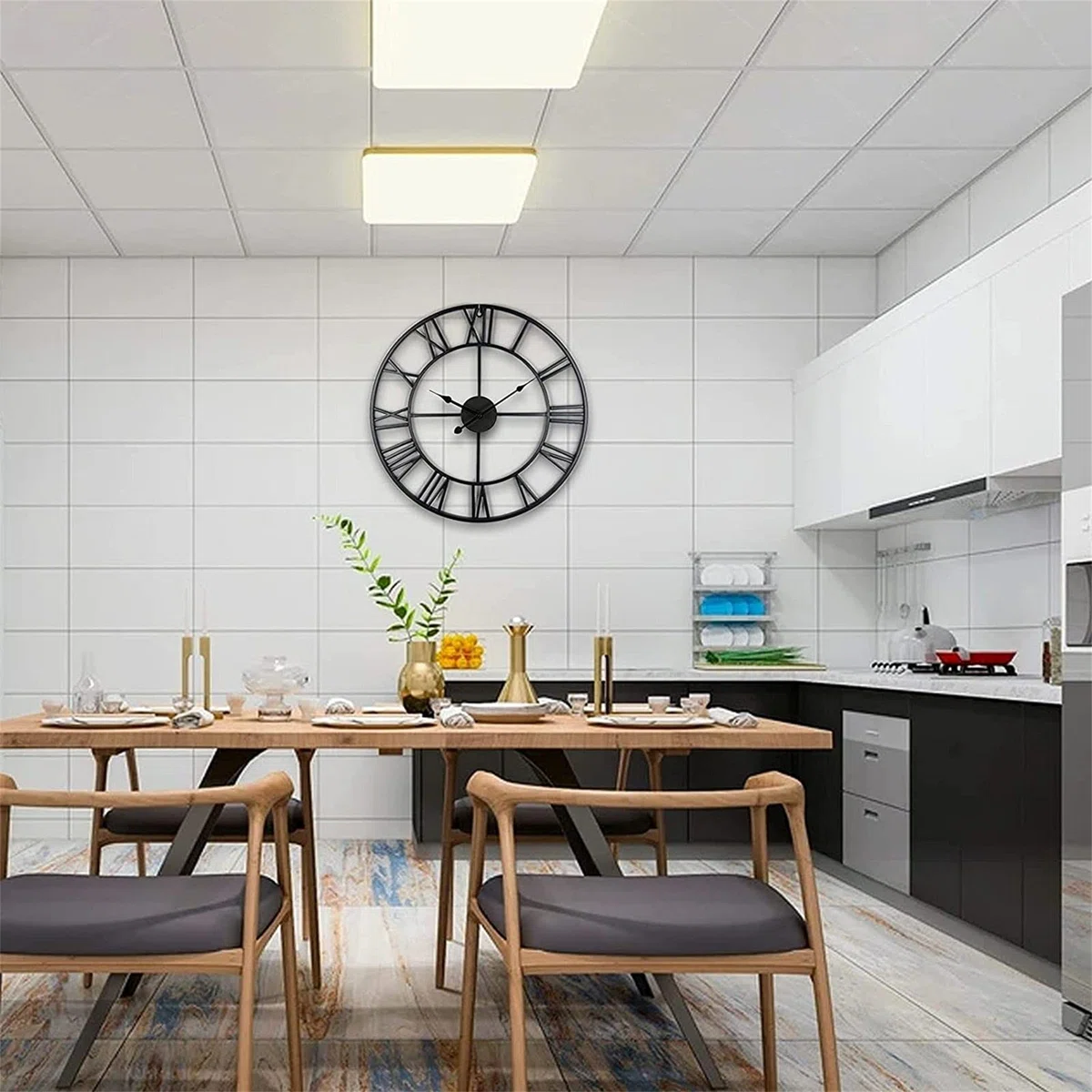 Elevate your space with striking modern design. Sleek black electrostatic coated metal clock.